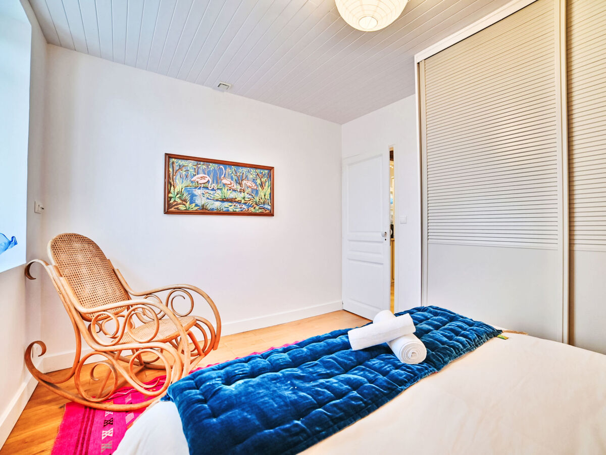 1 chambre avec 1 grand-lit (140 cm, longueur 190 cm).