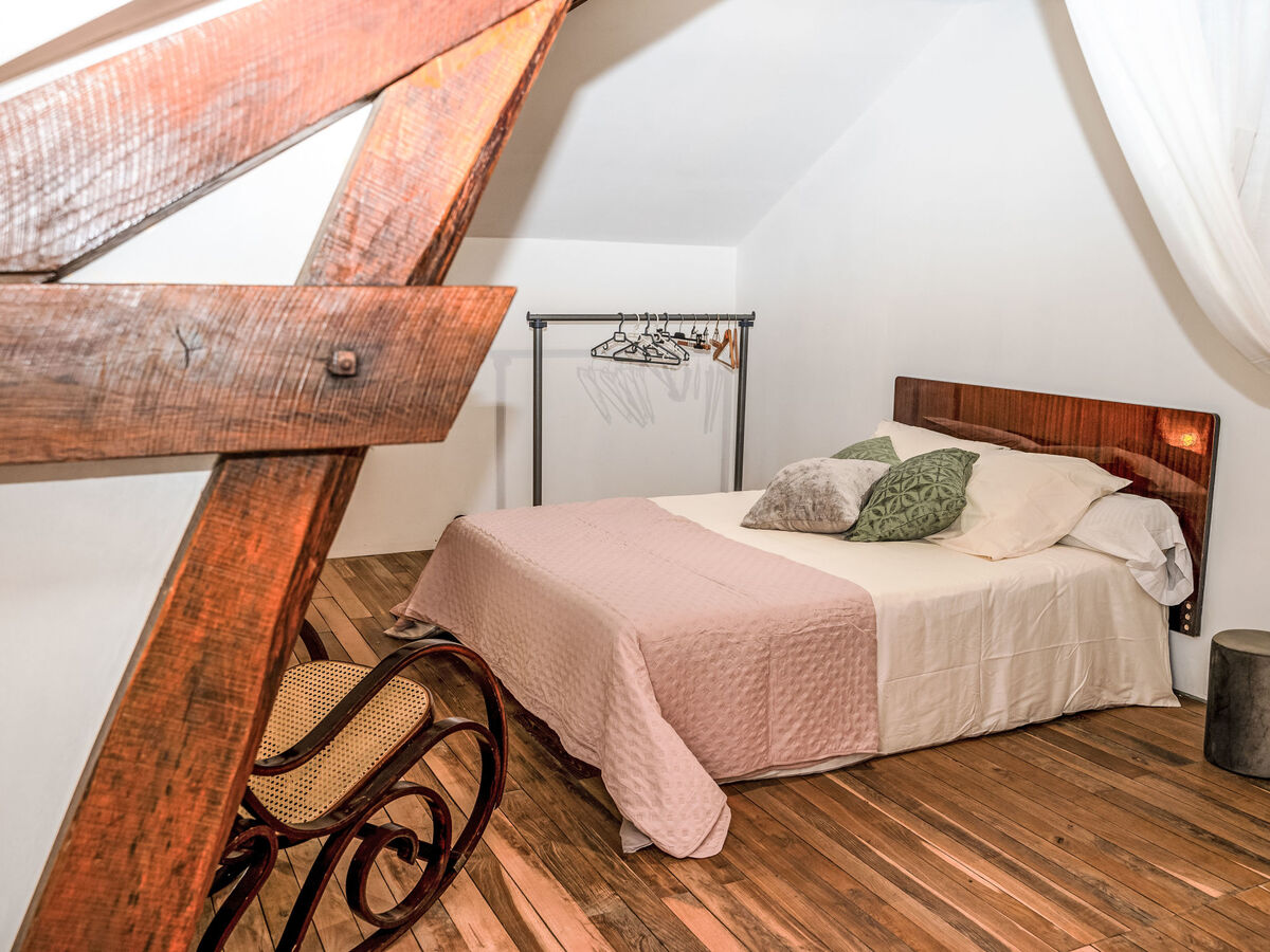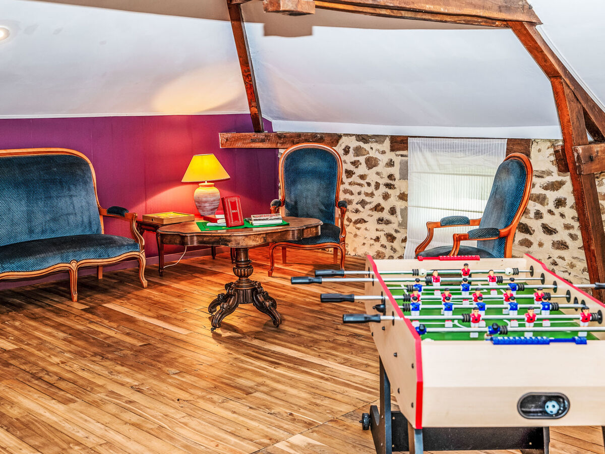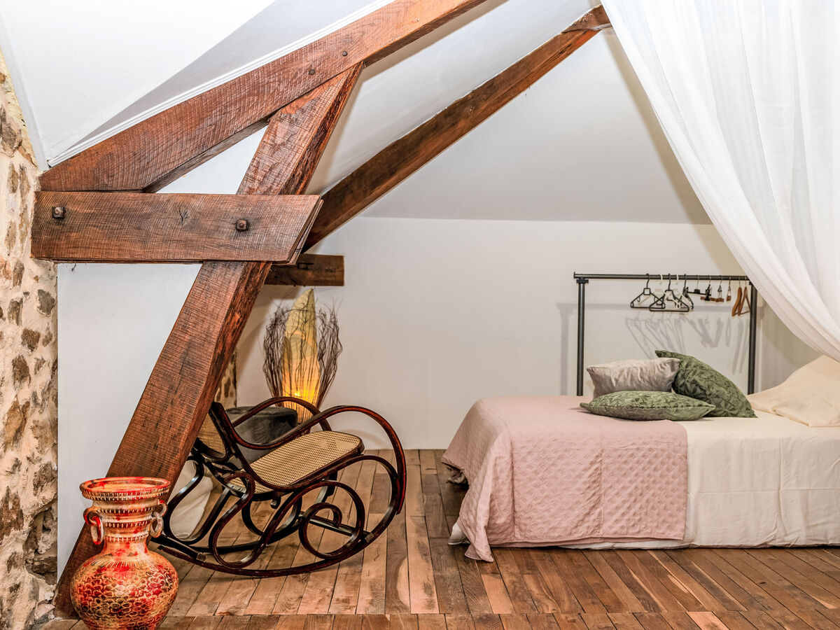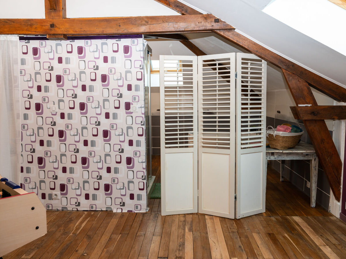 2ème étage: grande salle de jeux mansardée avec 1 grand-lit (1 x 140 cm, longueur 190 cm).