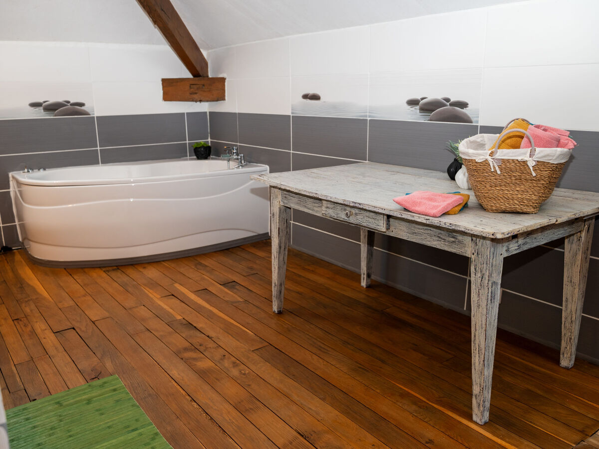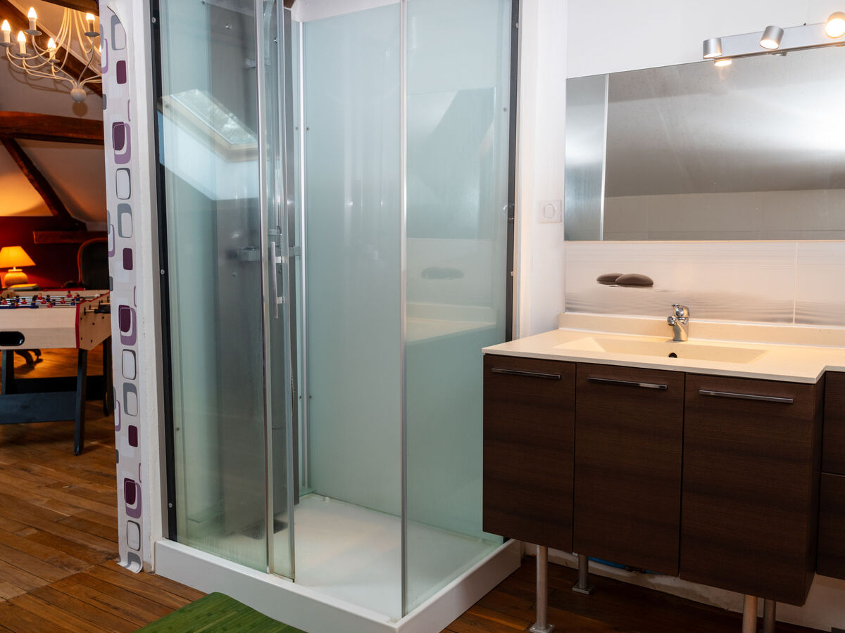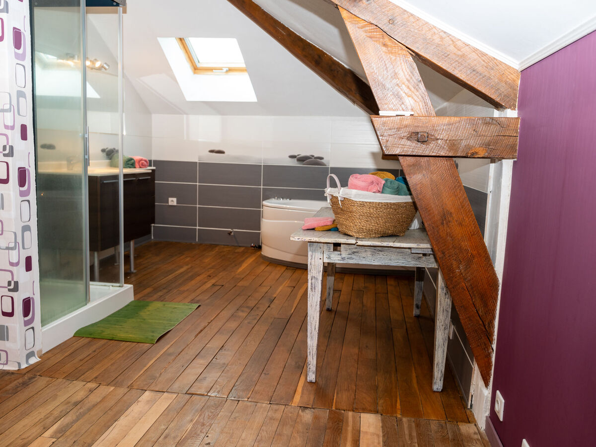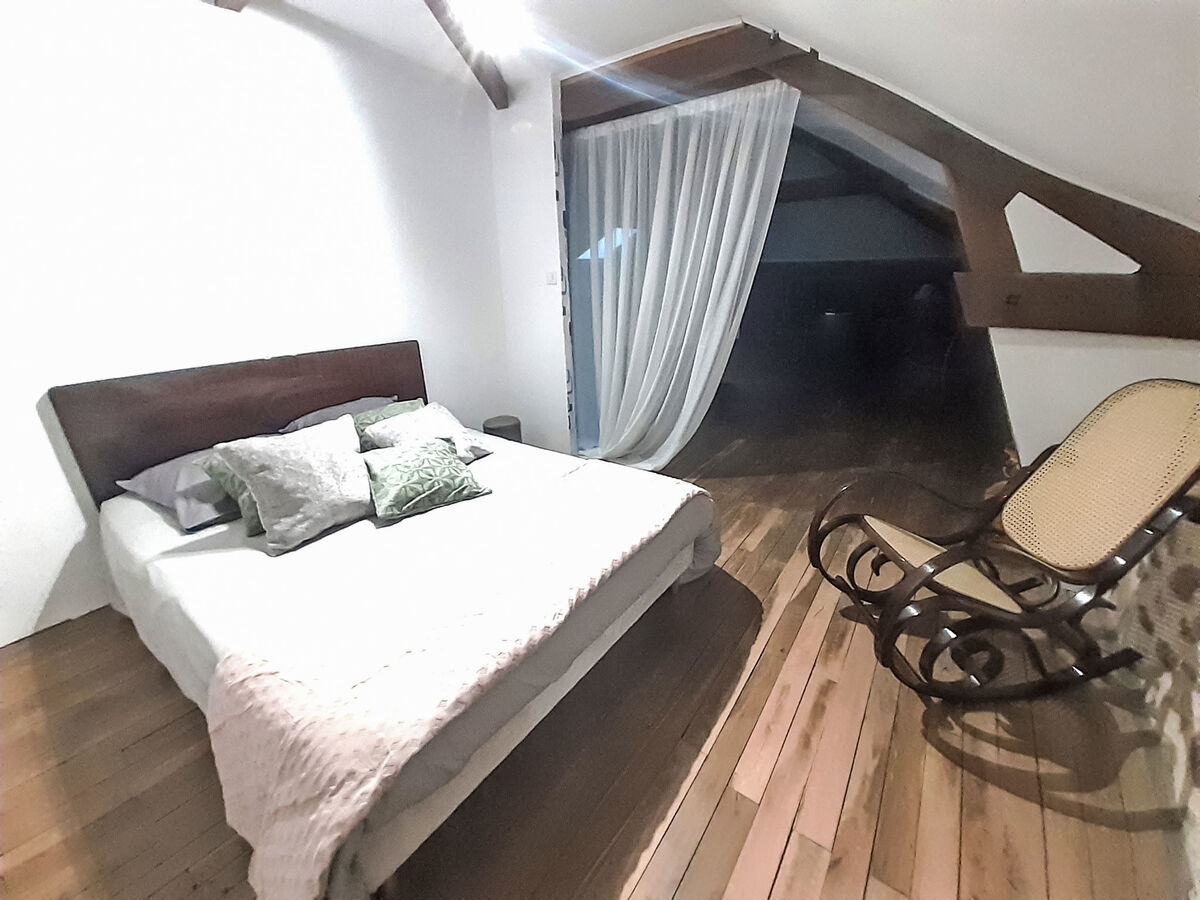 2ème étage: grande salle de jeux mansardée avec 1 grand-lit (1 x 140 cm, longueur 190 cm).