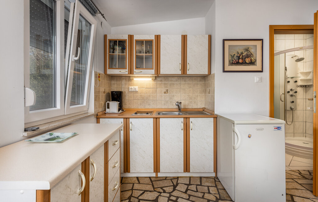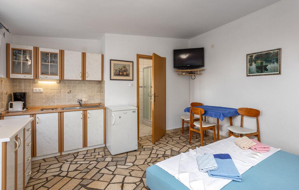 Promenez-vous jusqu'à la plage toute proche et offrez-vous un rafraîchissement dans l'eau claire. Profitez des sports nautiques ou explorez la côte lors d'une promenade à vélo. Faites un pique-nique dans un endroit romantique ou partez en excursion et laissez-vous gâter par les spécialités croates dans un charmant restaurant.