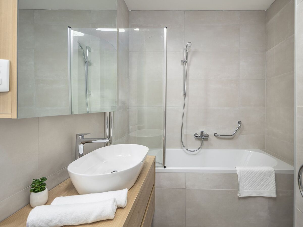 Spacieux, aménagement agréable et moderne: séjour/salle à manger avec 1 divan-lit (140 cm, longueur 200 cm), TV (satellite) et air-conditionné.