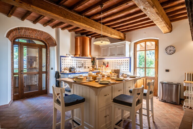 Tenuta del Serra - Villa Toscane de Luxe au Milieu des Oliviers Bienvenue dans le calme et la beauté de la campagne toscane. Tenuta del Serra est une magnifique villa de vacances, récemment rénovée, située au cœur de la Toscane, entourée de splendides oliveraies. Un endroit authentique où vivre l'Italie la plus vraie : élégante, chaleureuse et apaisante. La villa peut accueillir 8 personnes (un 9e lit est disponible sur demande) et marie charme traditionnel et confort moderne. Offrant aux hôtes une expérience unique, soignée dans les moindres détails. À l'intérieur, vous trouverez une salle à manger conviviale, un salon douillet et une authentique cantina (cave à vin) avec une sélection de vins locaux. La cuisine entièrement équipée (four, plaque de cuisson, micro-ondes, réfrigérateur, lave-vaisselle, machine à café) donne directement sur une terrasse avec une vue imprenable. Chaque chambre est spacieuse, climatisée, décorée avec goût et possède sa propre salle de bain moderne avec douche, lavabo, WC et bidet. À l'extérieur, une piscine privée avec solarium vous invite à la détente. Entourée de pelouse, d'oliviers et de coins ombragés sous la pergola ou le pavillon, c'est l'endroit idéal pour profiter du plein air. Le barbecue vous promet des soirées d'été conviviales sous les étoiles. L'oliveraie vous invite à la promenade, et les environs offrent de nombreux sentiers de randonnée et de VTT. Le charmant village médiéval de Vicopisano est tout proche, tout comme Florence, Lucques, Pise et Sienne. Tenuta del Serra est bien plus qu'une maison de vacances : c'est un lieu pour se ressourcer, partager et découvrir la Toscane dans toute sa splendeur.
