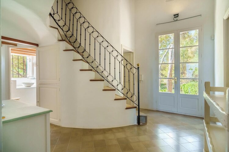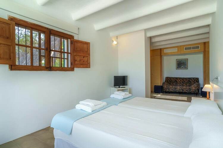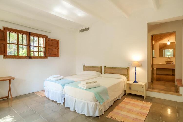 Située dans le paisible quartier de Mal Pas, cette villa majorquine traditionnelle offre une vue imprenable sur la mer et la pittoresque Marina de Bonaire. Entourée d'une forêt luxuriante, elle offre un sentiment d'isolement unique malgré sa proximité avec les plages de Sant Joan et Sant Pere. La vaste terrasse de la villa est idéale pour se prélasser au soleil en journée ou savourer des repas en plein air sous les étoiles, tout en profitant du calme du littoral.