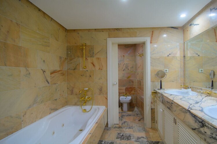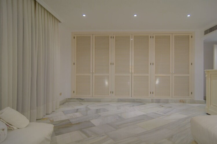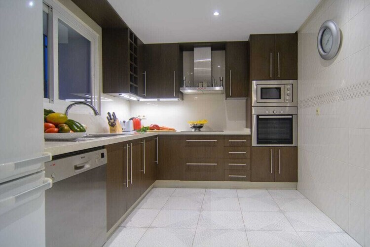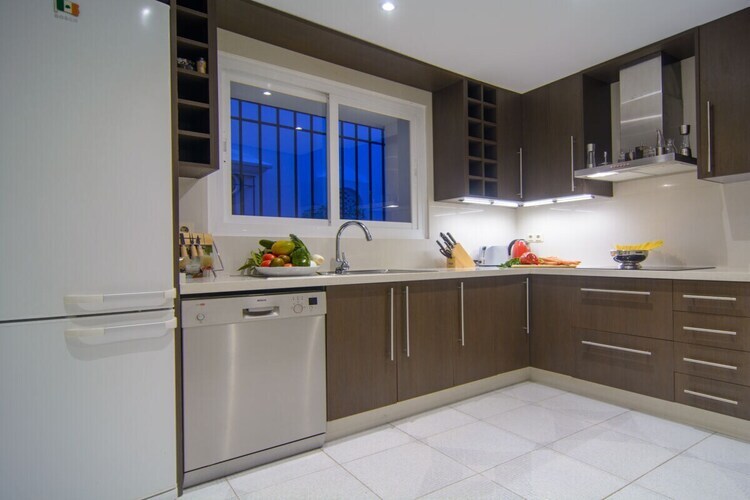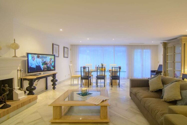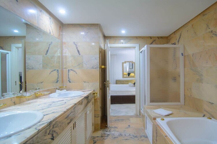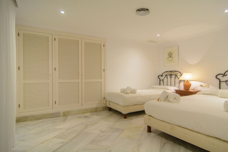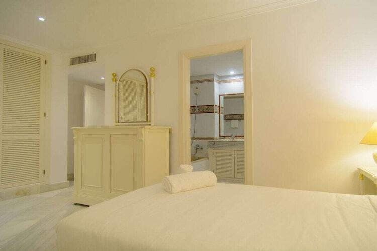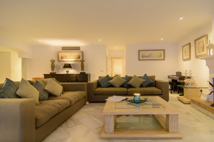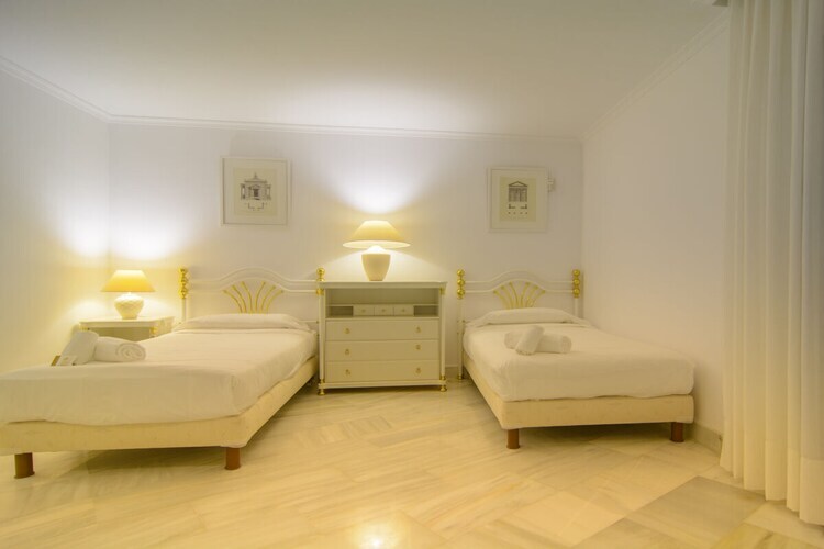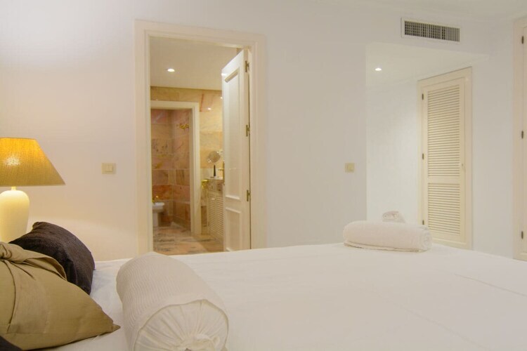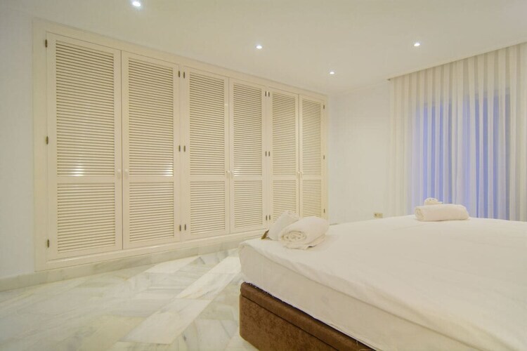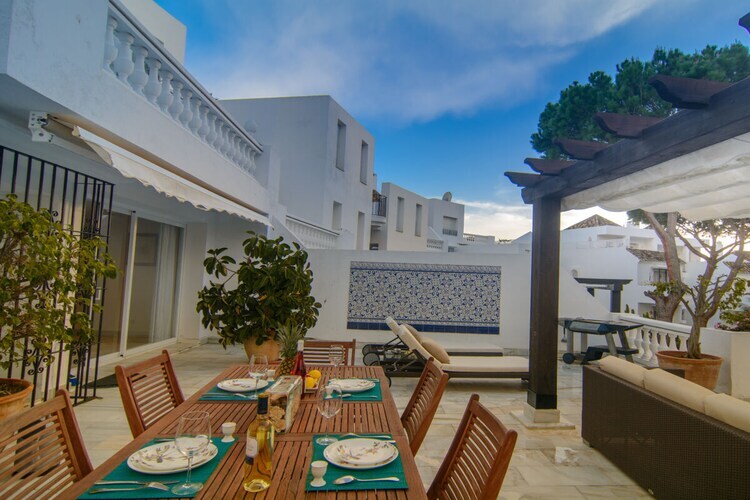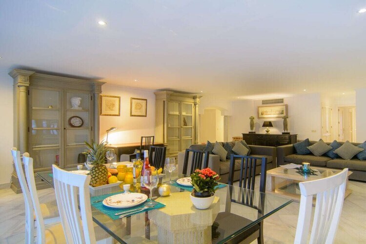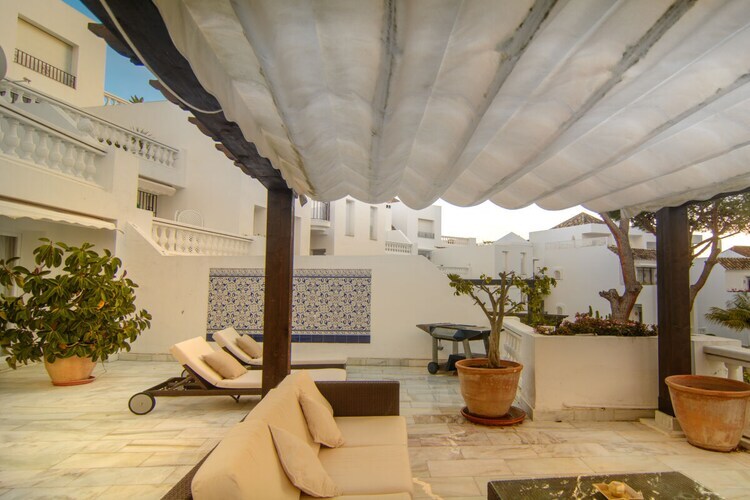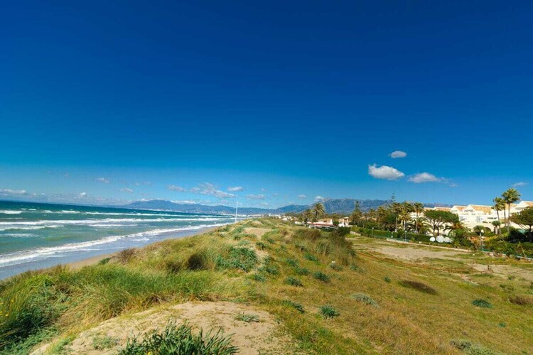 Exquis appartement en bord de mer de 3 chambres (180m2) terrasse couverte (75m2) transats, barbecue dans l'urbanisation White Pearl Beach, piscine chauffée, jardin