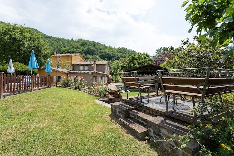 Cette spacieuse villa près d'Assise offre une escapade paisible à la campagne pouvant accueillir jusqu'à 25 personnes. Elle dispose de plusieurs logements indépendants, de chambres élégantes et d'espaces de vie chaleureux. Une cuisine professionnelle et une grande salle à manger sont idéales pour les réunions de groupe, tandis que le jardin luxuriant, la terrasse privée et la piscine clôturée (10 x 5 m) invitent à la détente. Les familles apprécieront l'aire de jeux avec ping-pong, baby-foot, fléchettes, balançoires et cabane dans les arbres.