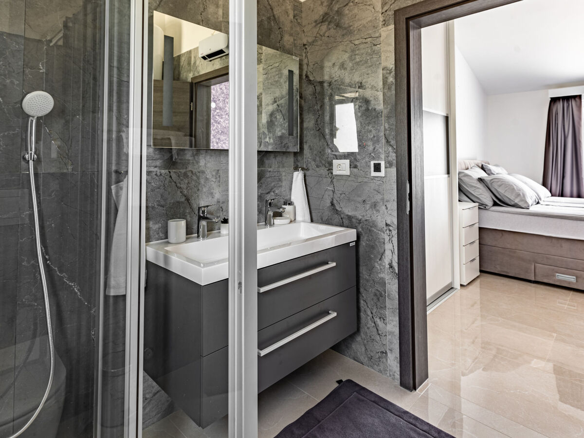 1 chambre avec 1 lit (120 cm, longueur 200 cm), douche/WC et air-conditionné.