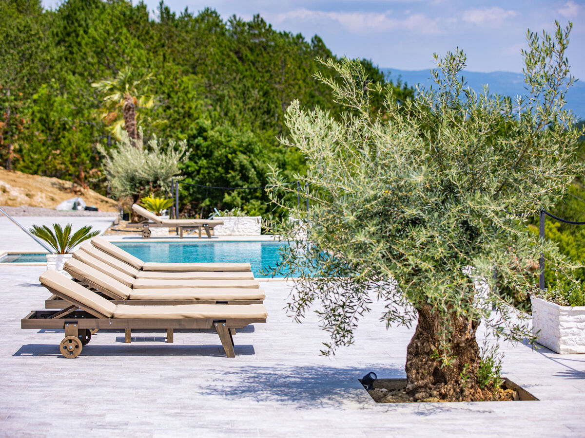 A usage privé: terrain 10'000 m2 avec plantes, piscine rectangulaire (10 x 4 m, profondeur 140 cm, disponibilité saisonnière: 01.Mai.