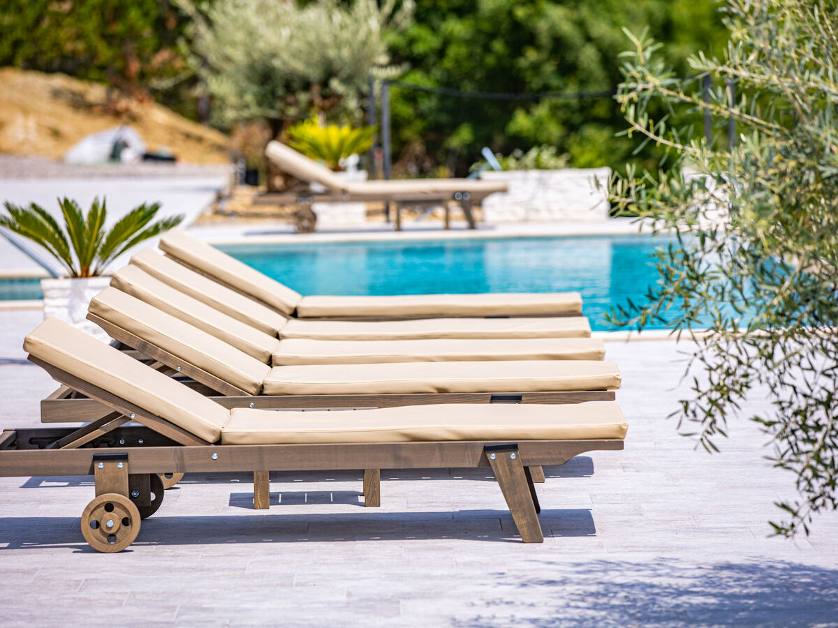 Meubles de terrasse, mobilier de balcon, chaises longues.