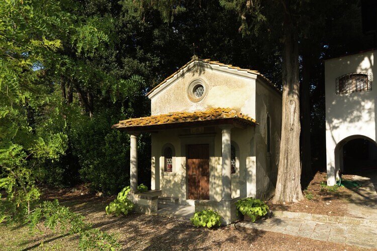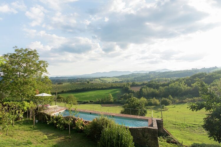La maison est située en haut d'une colline dans la vallée rurale de l'Arno et, bien qu'elle soit à seulement 24 km du centre historique de Florence, jouit d'une vue imprenable sur la campagne toscane environnante.