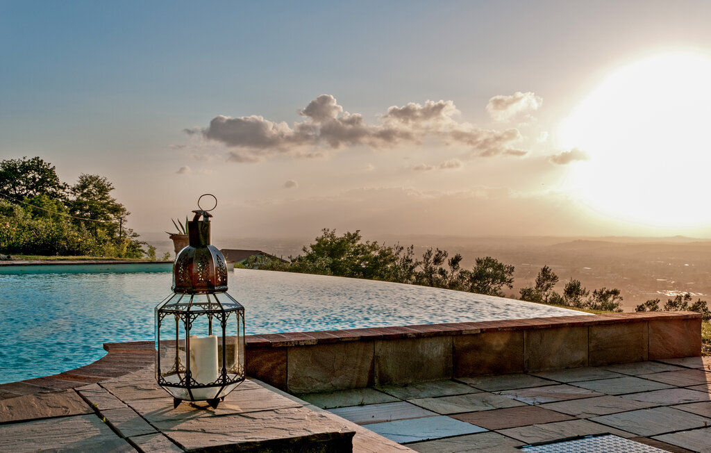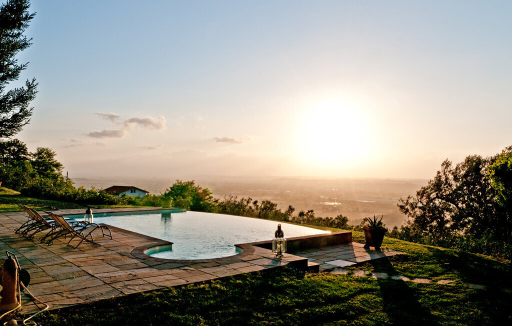 Bien-être à l'extérieur : Location de vacances disposant de chaises-longues et d'un ou plusieurs équipements tels que piscine extérieure, jacuzzi extérieur, lit à baldaquin de jardin etc...