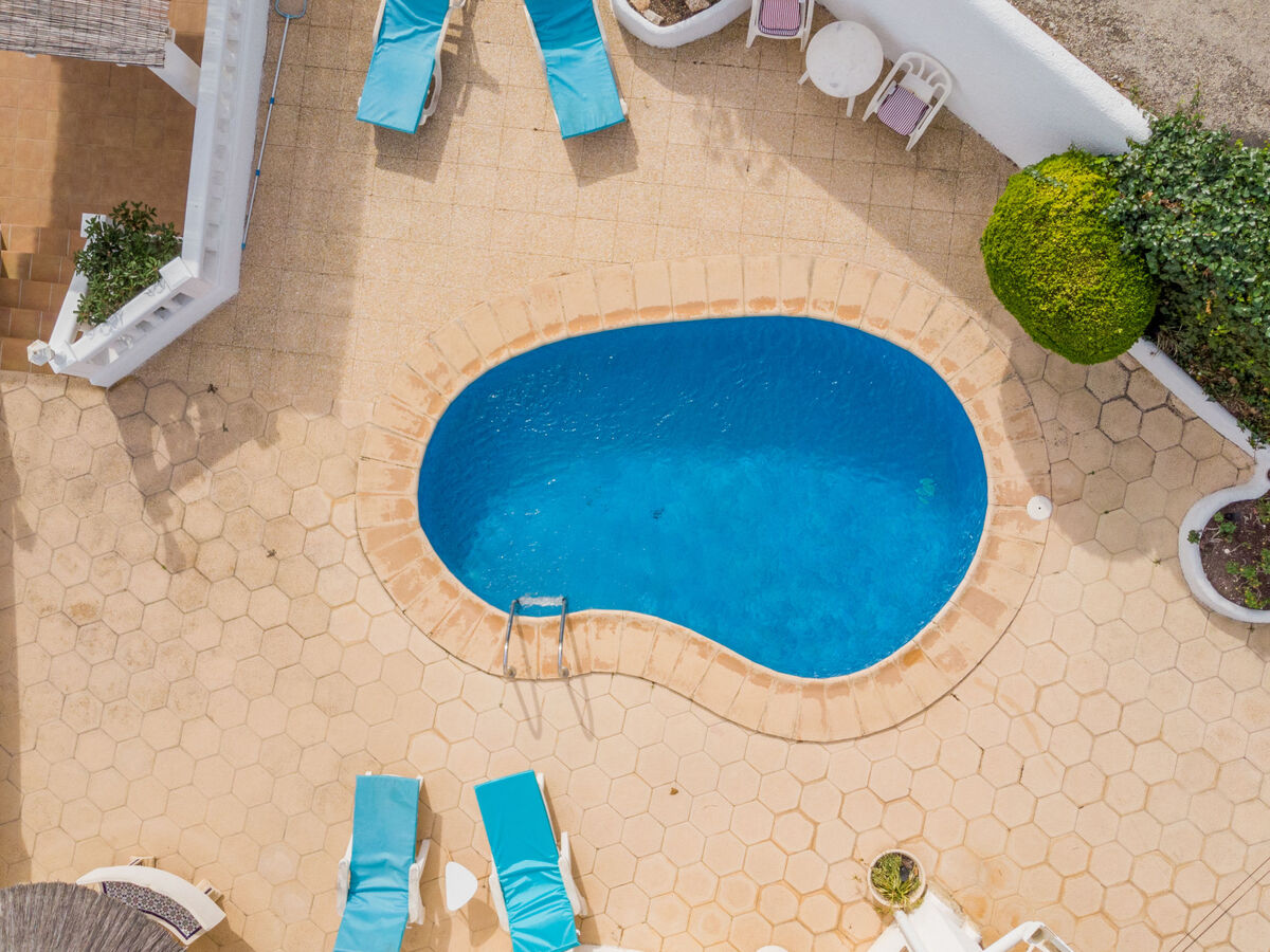 À 2 km du centre de Moraira, situation tranquille, ensoleillée quartier résidentiel, zone avec peu de trafic, à 1 km de la mer, à 1 km de la plage.