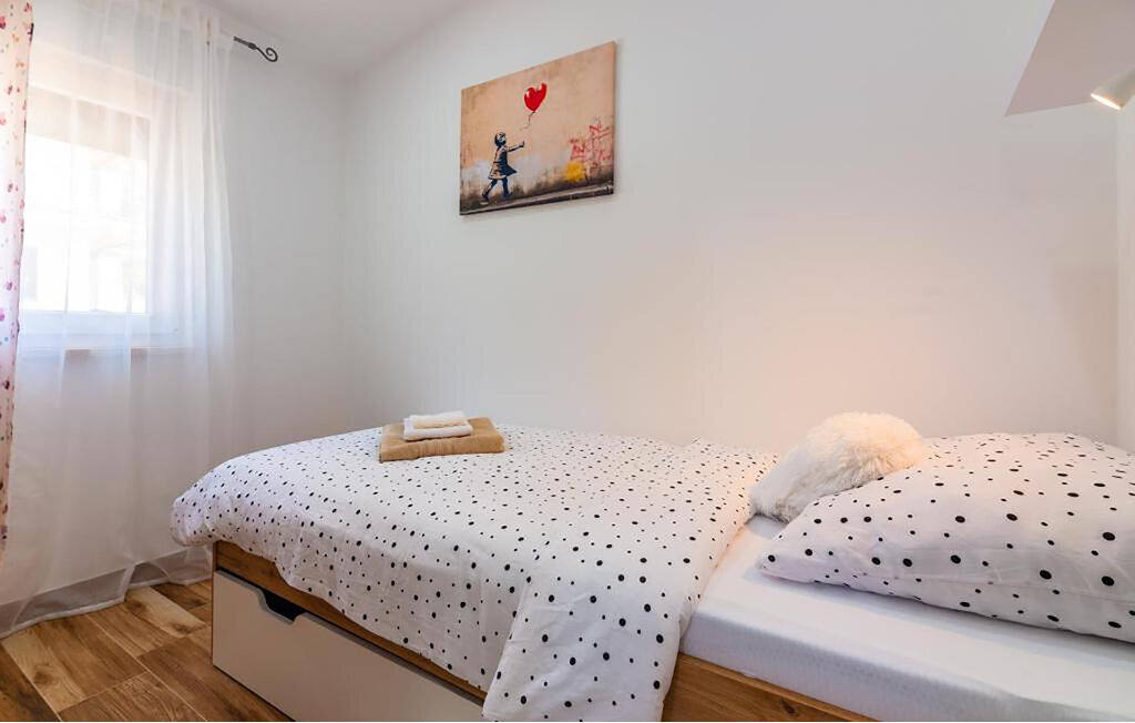 Les environs offrent de nombreuses possibilités de loisirs : Explorez la charmante ville côtière d'Opatija et sa célèbre promenade, faites du vélo en famille, partez en randonnée dans le parc naturel idyllique d'Uka ou faites un tour en bateau le long de la Riviera croate.