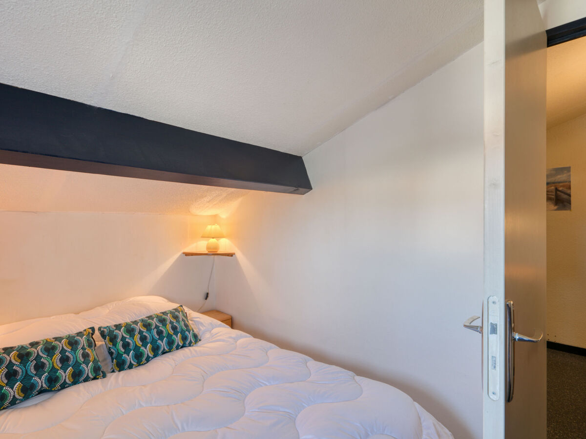 1 chambre, mansardée avec 1 grand-lit (1 x 140 cm, longueur 190 cm).
