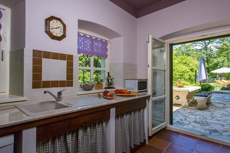 La villa est équipée de tout le confort moderne, notamment d'une cuisine entièrement indépendante avec des appareils électroménagers essentiels, d'un lave-linge et d'une cheminée chaleureuse. Vous pourrez profiter du confort de la climatisation, du chauffage central et du Wi-Fi, tandis qu'une terrasse privée et des meubles d'extérieur offrent l'espace idéal pour dîner ou simplement vous détendre au grand air. Avec un emplacement idéal à proximité des principales attractions et son environnement paisible et boisé, cette villa offre une base parfaite pour des vacances inoubliables en Istrie.