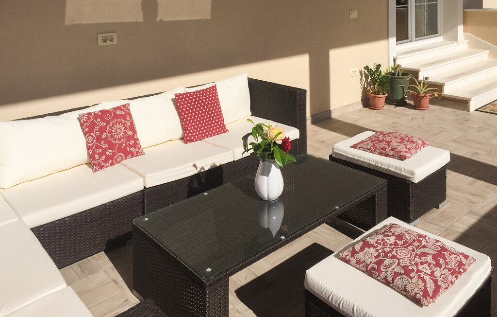 Le vaste espace extérieur est fait pour passer toute la journée à l'extérieur. Profitez de la douceur du soleil matinal en prenant votre petit-déjeuner sur le balcon, rafraîchissez-vous dans la grande piscine et détendez-vous dans le confortable salon en dégustant un verre de vin tandis que le soleil se noie dans la mer.