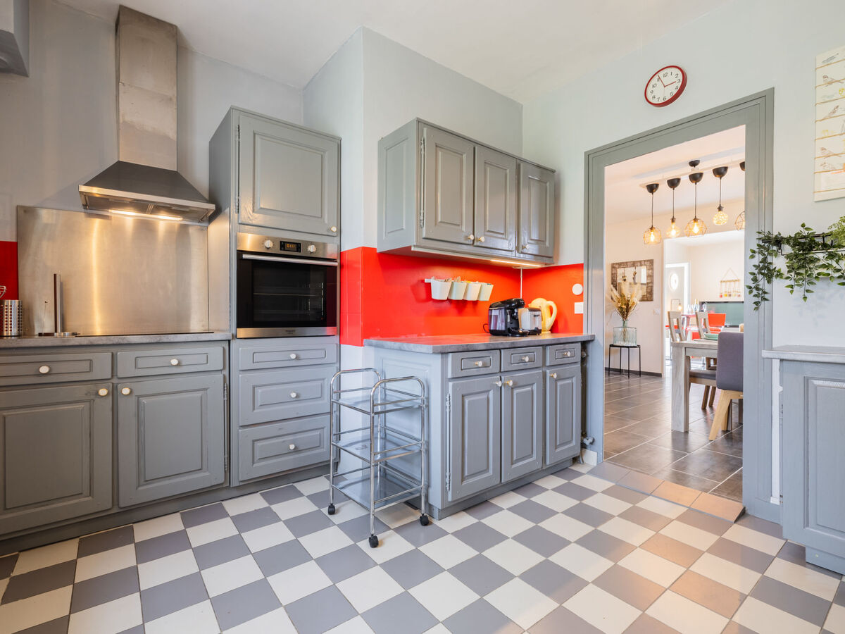 Cuisine (four, 4 plaques à induction, grille-pain, bouilloire électrique, micro-ondes, congélateur, cafetière électrique).