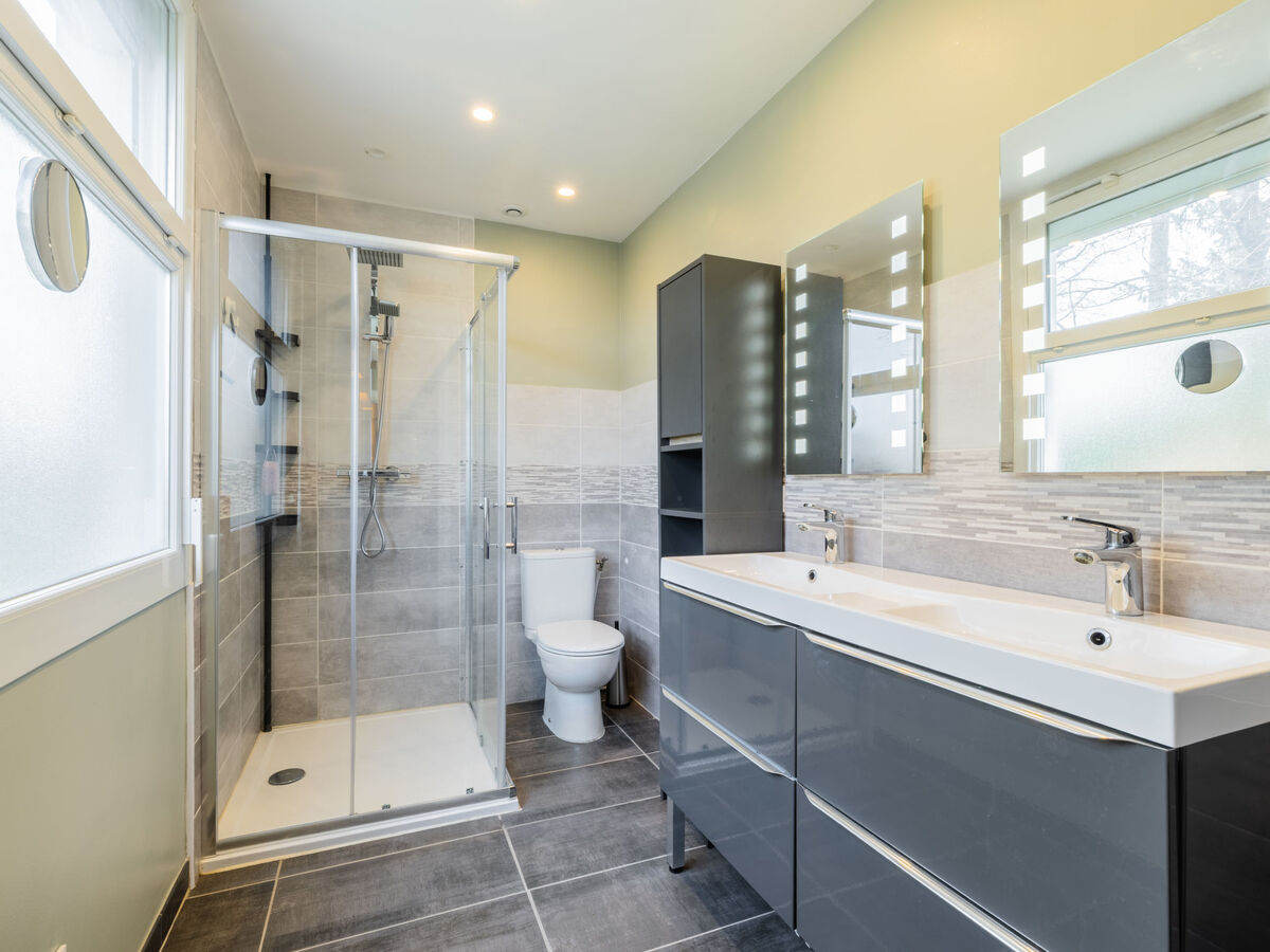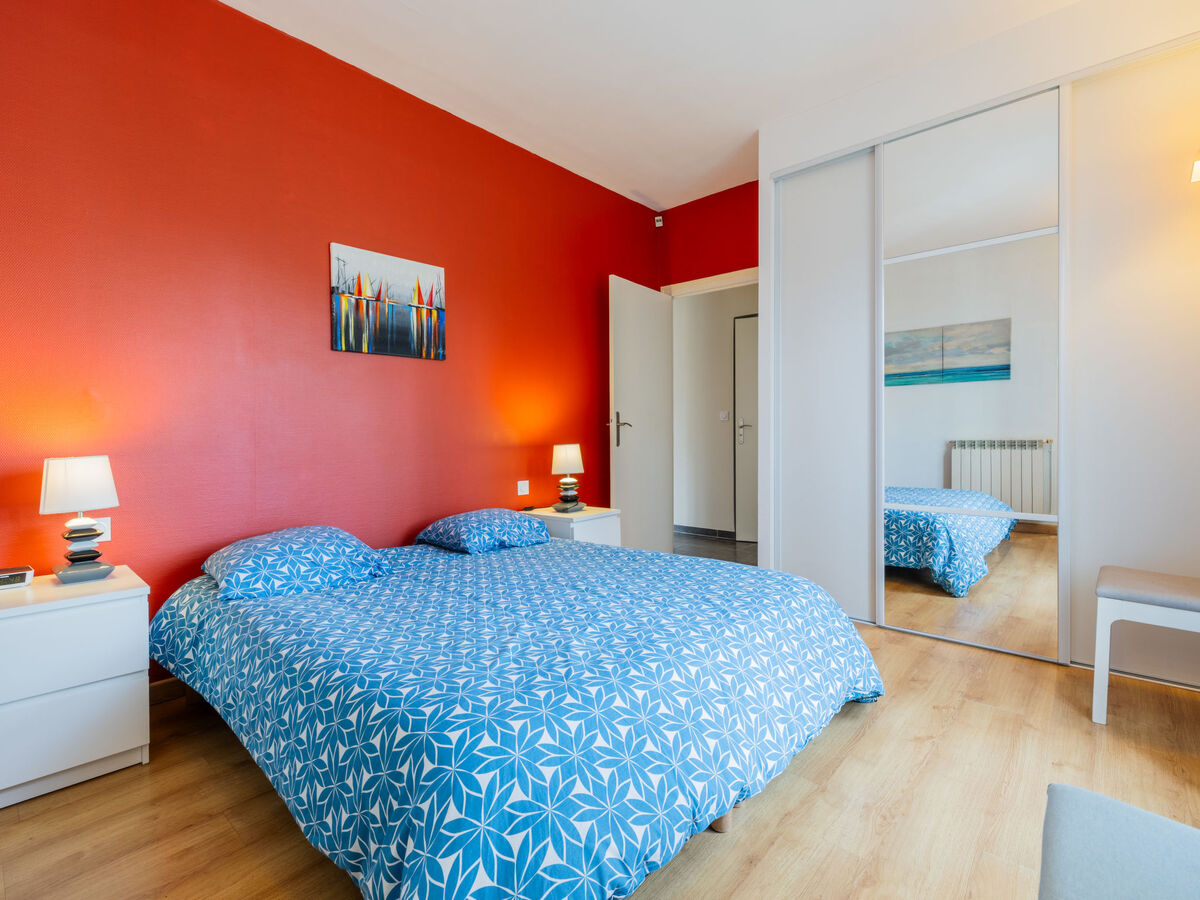 1 chambre avec 1 lit double (2 x 80 cm, longueur 200 cm), douche/WC.