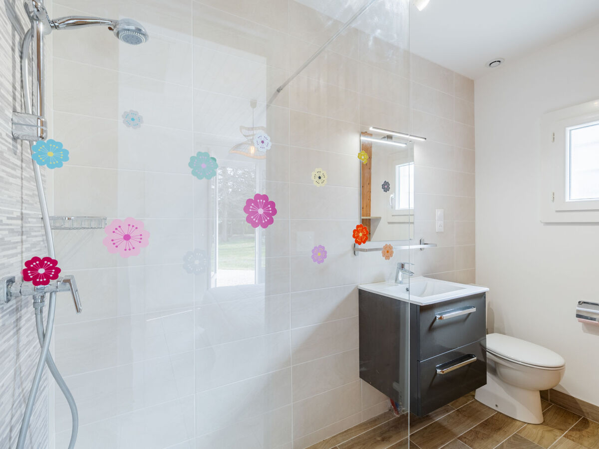 1 chambre avec 1 grand-lit (1 x 140 cm, longueur 190 cm), douche/WC.