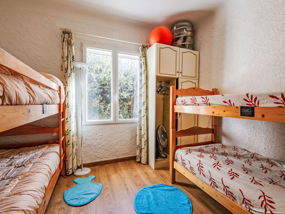 1 chambre avec 2 x 1 lits superposés (90 cm, longueur 190 cm), ventilateur.