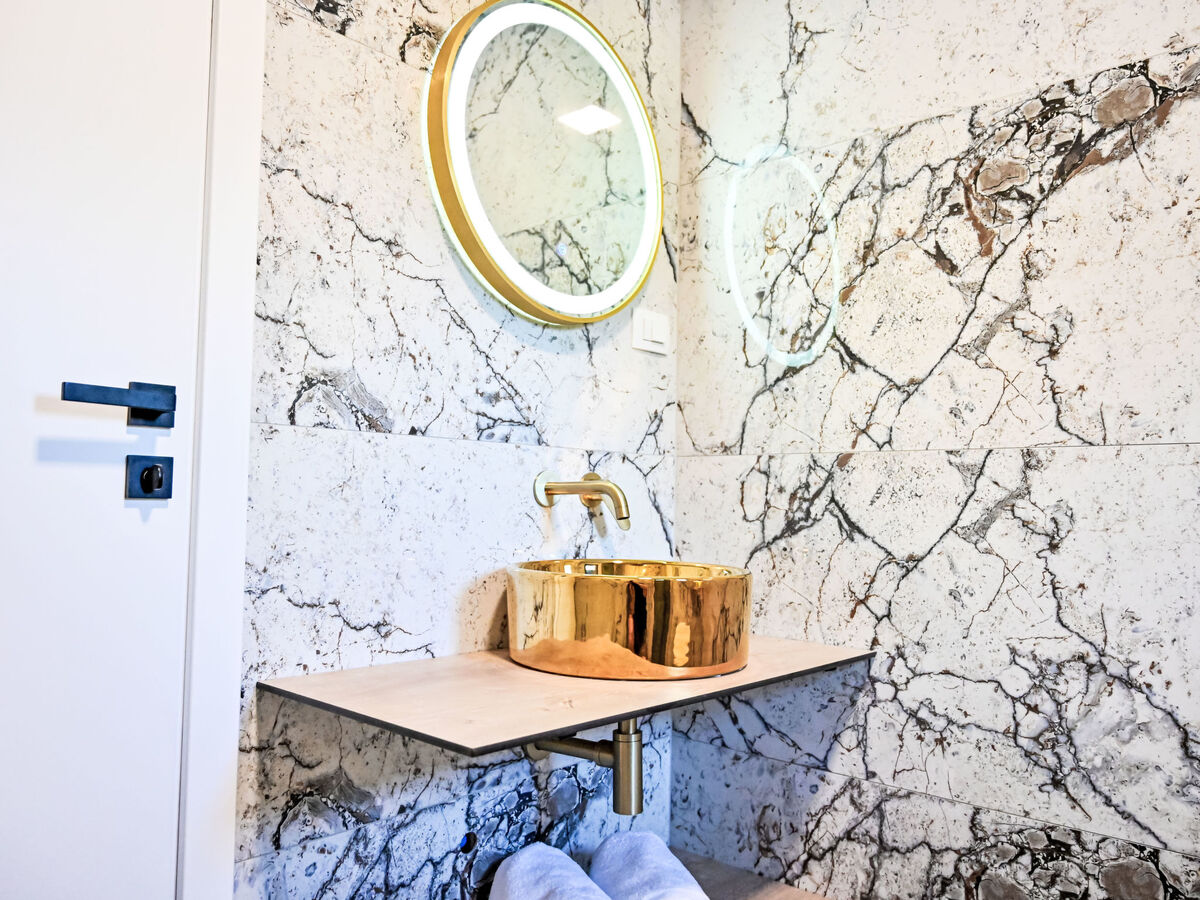À l'étage supérieur: 2 chambres, chaque chambre avec: 1 grand-lit (180 cm, longueur 200 cm), douche/WC.