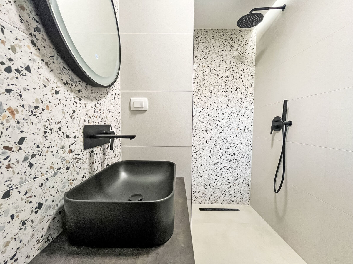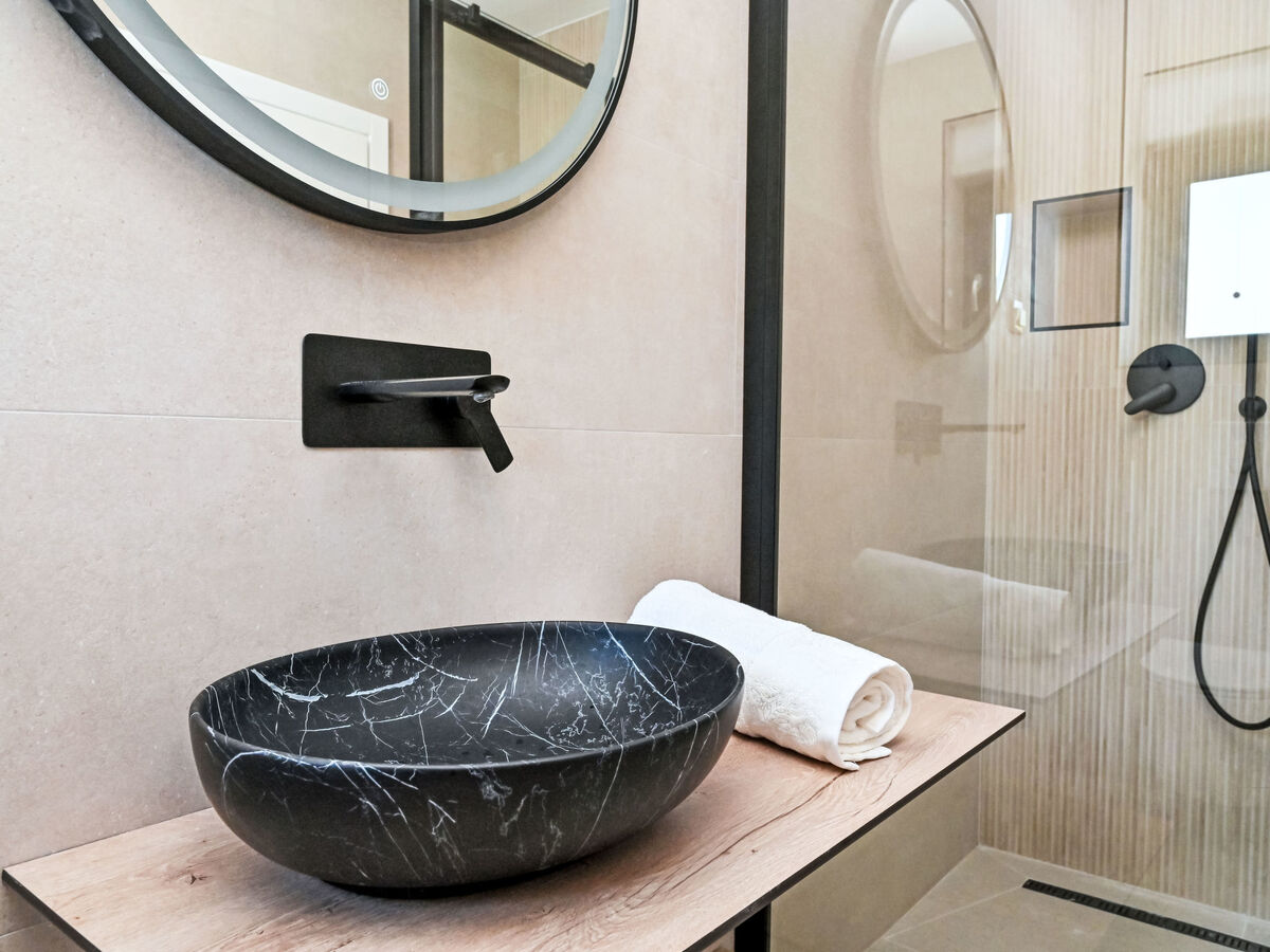 1 chambre avec 1 grand-lit (160 cm, longueur 200 cm), douche/WC.