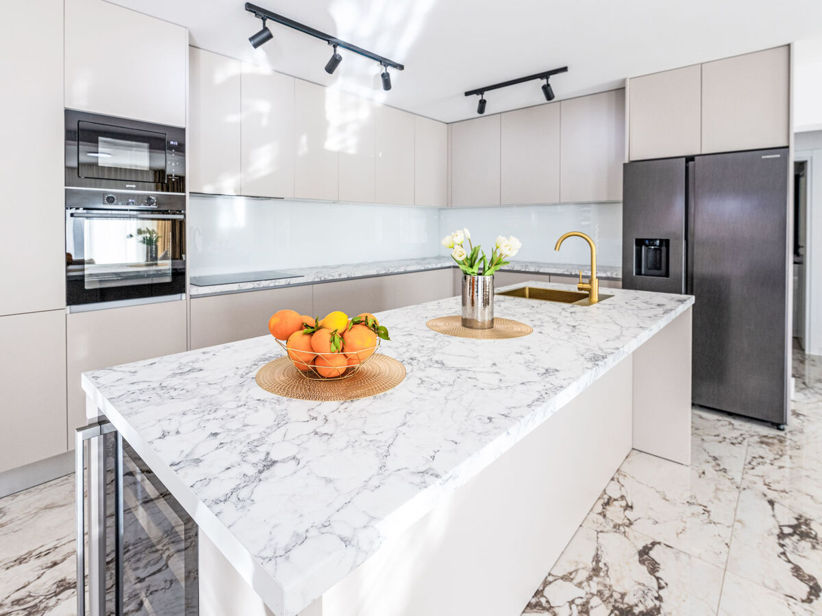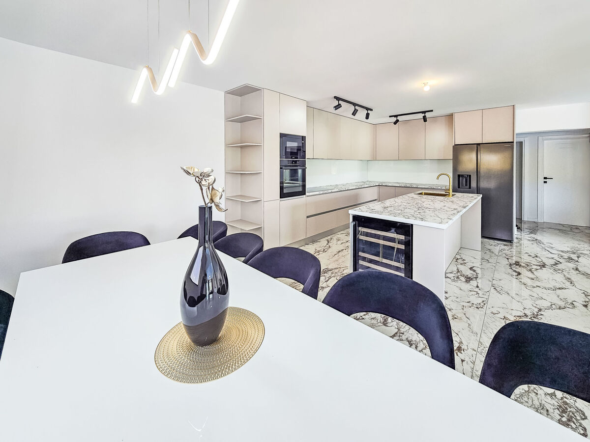 Cuisine ouverte (four, lave-vaisselle, 4 plaques vitrocéramiques, micro-ondes, congélateur, cafetière électrique).