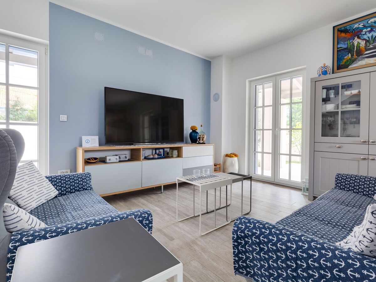 Séjour/salle à manger 30 m2 avec 2 lits (100 cm, longueur 200 cm), TV (écran plat), air-conditionné.