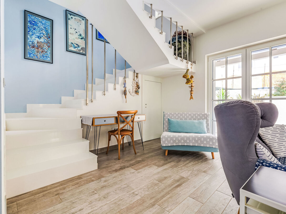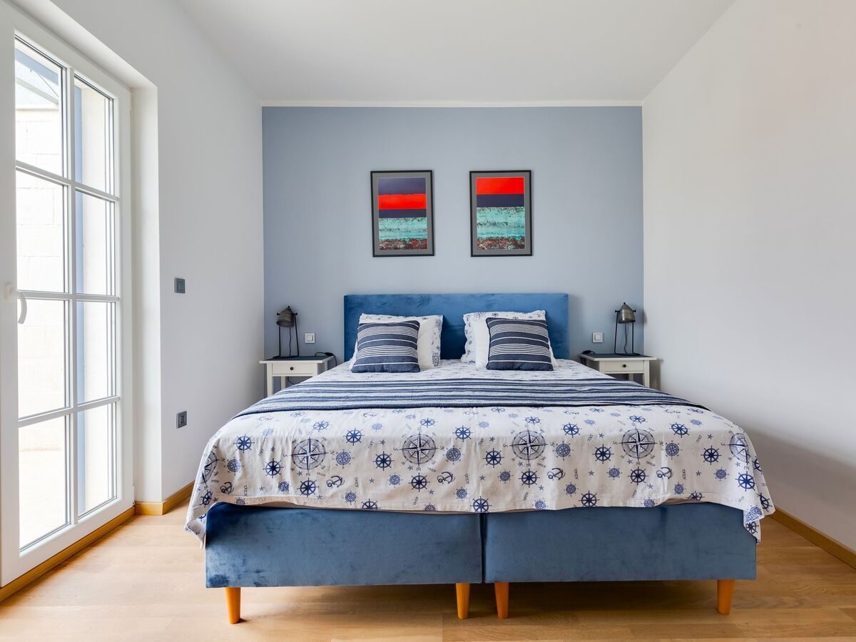 À l'étage supérieur: 1 chambre avec 1 grand-lit (200 cm, longueur 220 cm), TV (écran plat), air-conditionné.