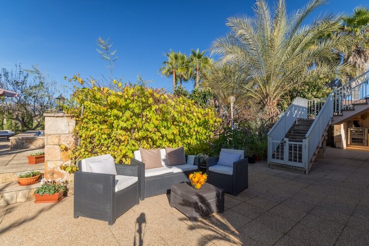 Située juste à l'extérieur de la ville d'Inca, la propriété est entourée d'un jardin luxuriant avec palmiers et espaces verts, offrant une atmosphère paisible. Inca, surnommée la « capitale du cuir », est célèbre pour son marché hebdomadaire animé, qui se tient tous les jeudis, et sa foire agricole, « Dijous Bo ». La ville est bien desservie par les transports en commun, avec un accès facile à la côte nord de Majorque. À quelques minutes en voiture, vous trouverez de magnifiques plages comme Playas de Muro et Puerto Pollença, réputées pour leur propreté et leurs excellents services. Les charmants cafés, restaurants et bars d'Inca sont également facilement accessibles.