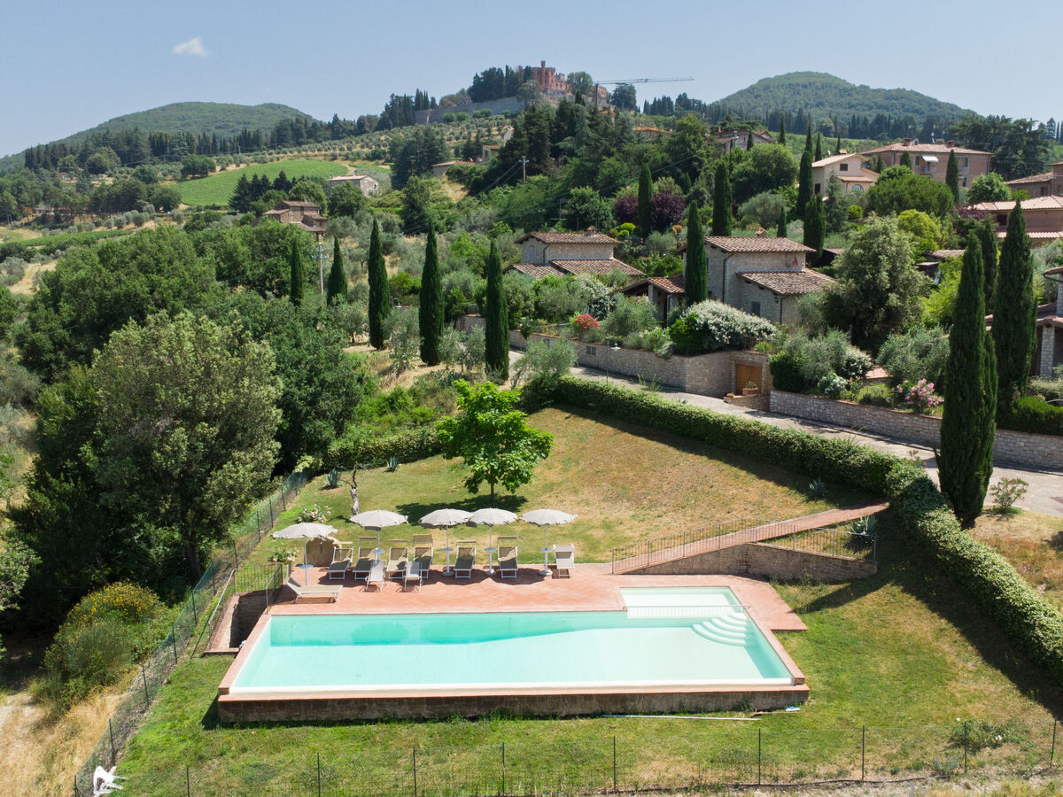 Dans le hameau de San Regolo, à 10 km du centre de Gaiole in Chianti, à 16 km du centre de Radda in Chianti, à 76 km du centre de Firenze, situation ensoleillée sur une colline, quartier résidentiel, dans la verdure.