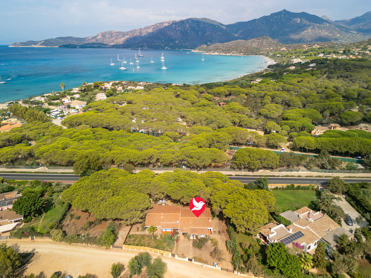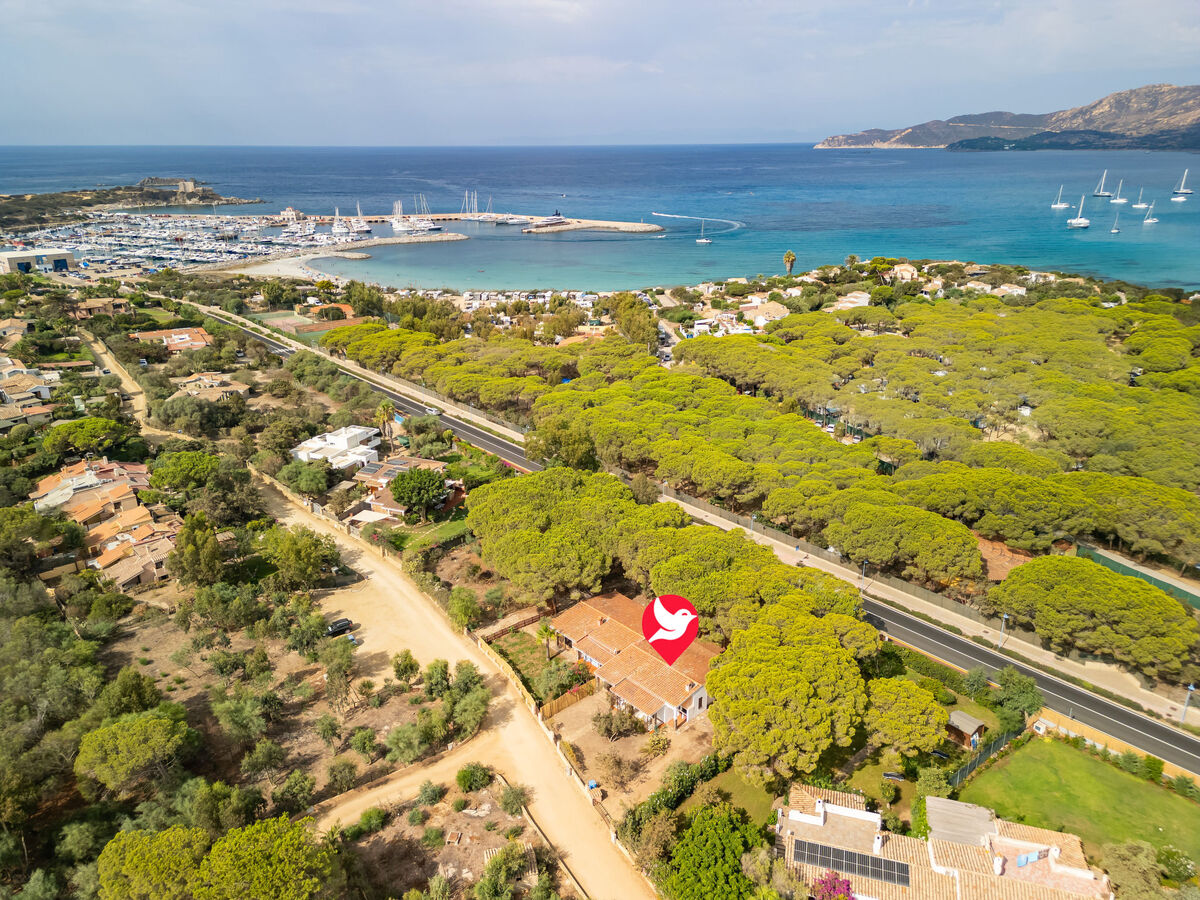 En bordure de la localité, à 1 km du centre de Villasimius, situation tranquille, ensoleillée, à 200 m de la mer, à 200 m de la plage, dans la verdure.