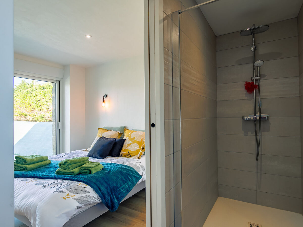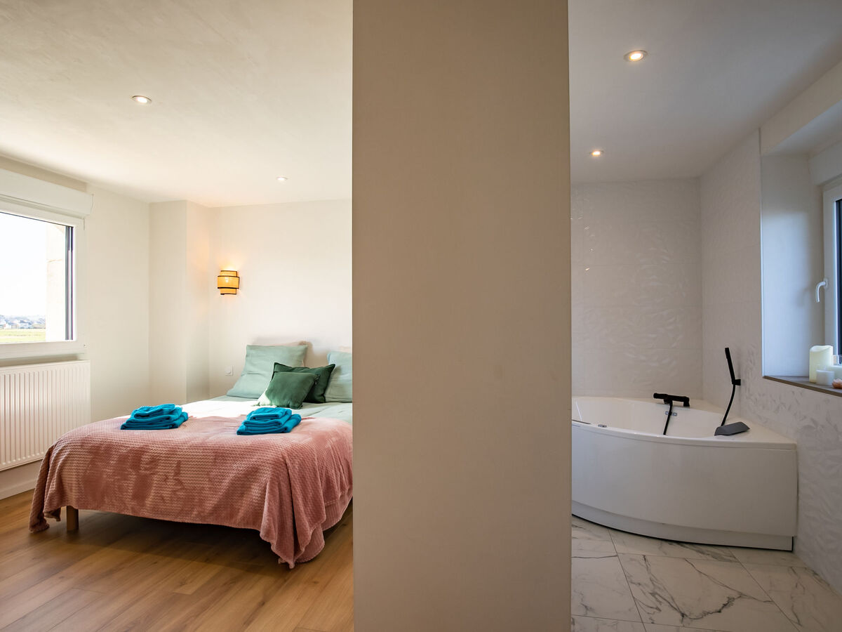 1 chambre 16 m2 avec 1 grand-lit (160 cm, longueur 200 cm) avec baignoire d'angle et TV.
