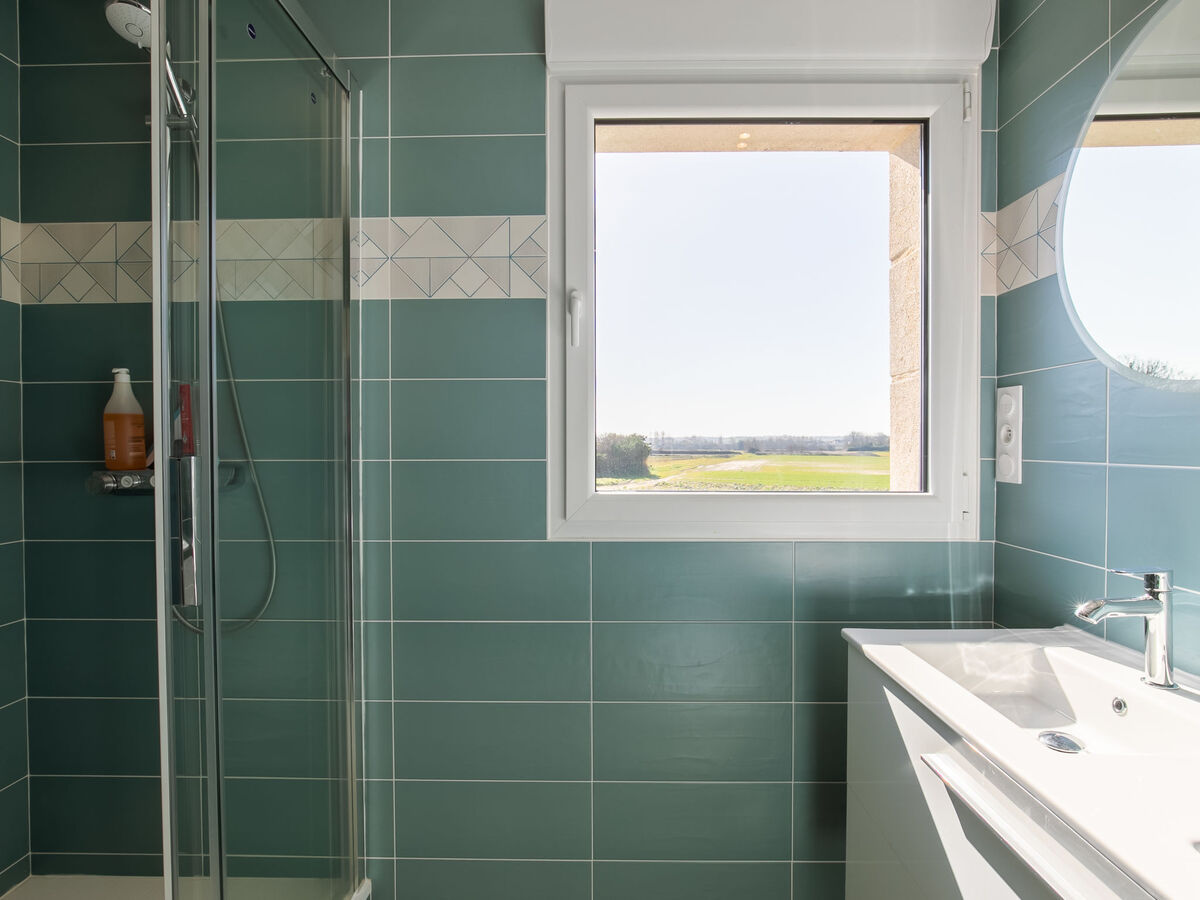 1 grande chambre 16 m2 avec douche et TV (écran plat).