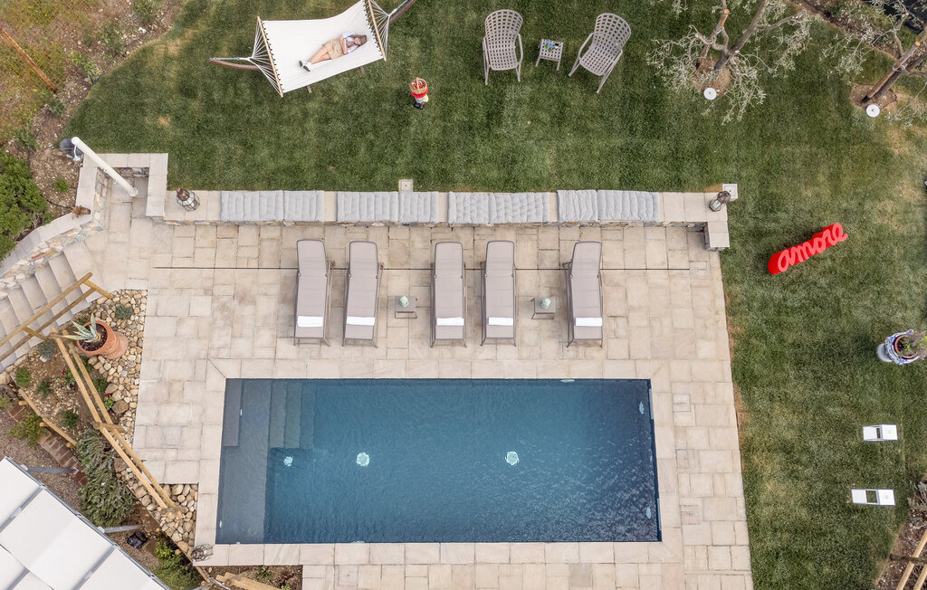 Bien-être à l'extérieur : Location de vacances disposant de chaises-longues et d'un ou plusieurs équipements tels que piscine extérieure, jacuzzi extérieur, lit à baldaquin de jardin etc...