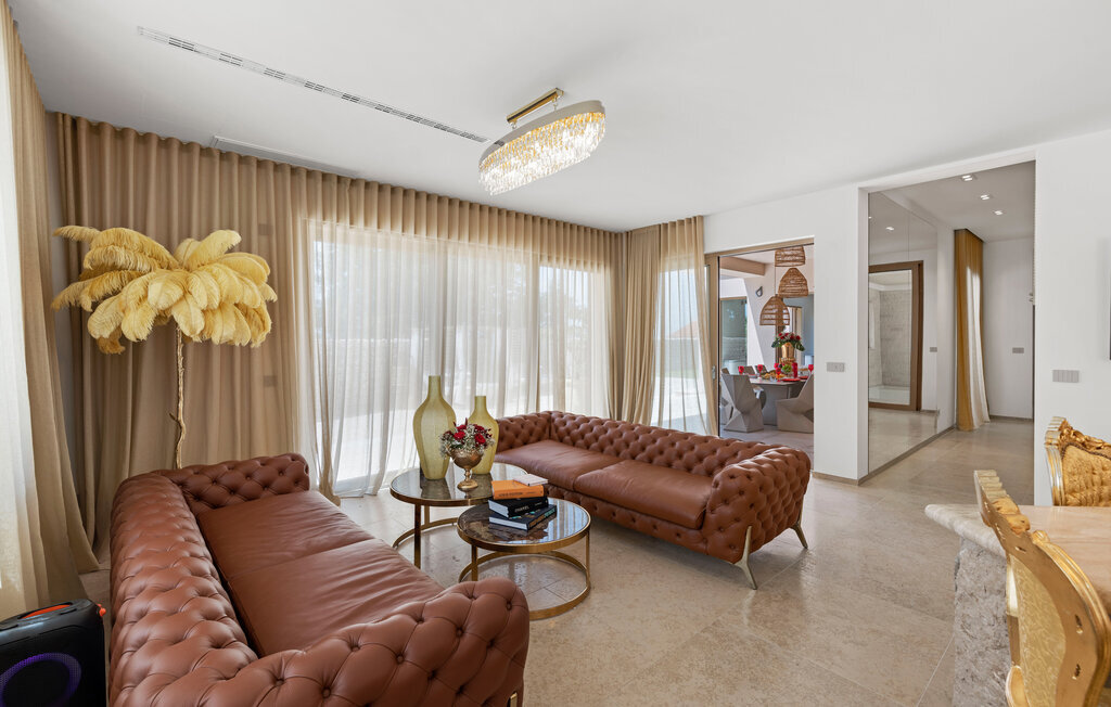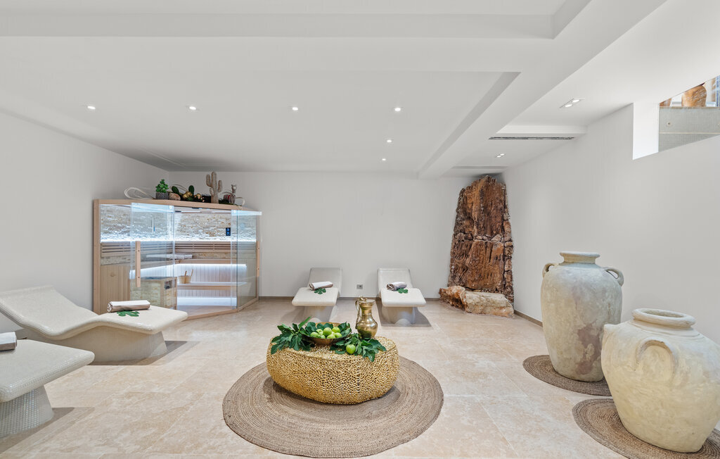 Ce domicile exclusif allie l'élégance moderne et le charme classique. Le salon spacieux avec des meubles nobles et de grandes fenêtres panoramiques vous invite à passer des heures de détente. Faites-vous plaisir avec des créations culinaires dans la cuisine élégante et savourez vos repas autour de l'élégante table à manger. Terminez la journée dans le sauna ou sur les chaises longues confortables de la salle de repos et, les jours plus frais, faites des longueurs dans la généreuse piscine intérieure.