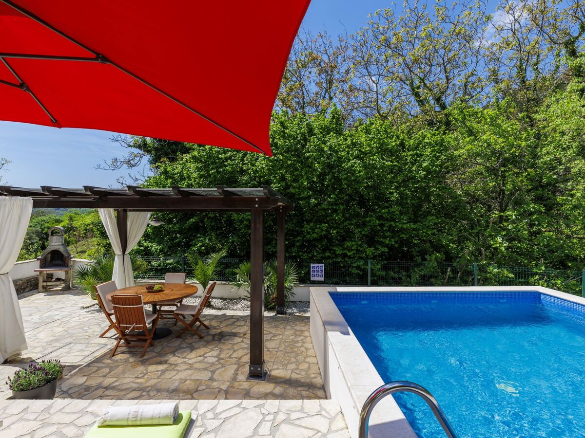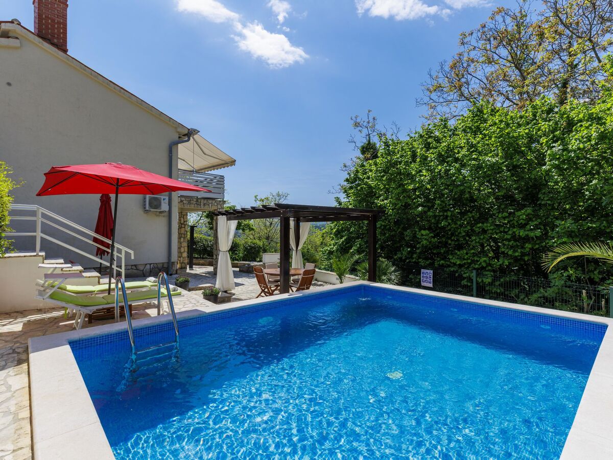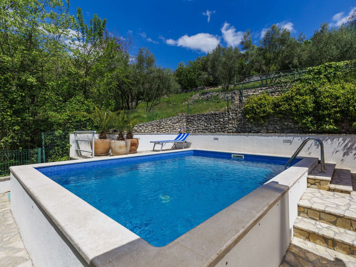 A usage privé: terrain 250 m2 (clôturé), jardin sur plusieurs niveaux plantes, piscine (5 x 4 m, profondeur 130 cm, disponibilité saisonnière: 01.Mai.