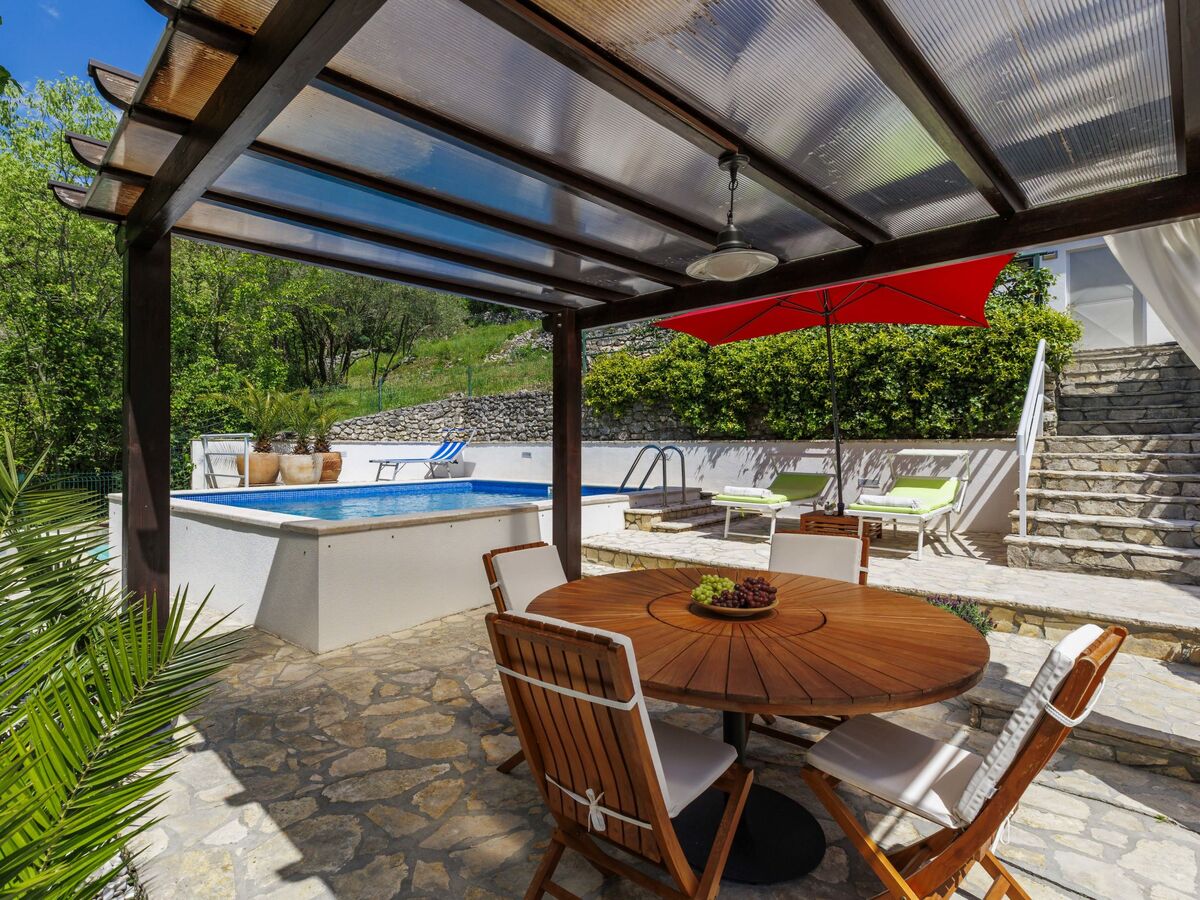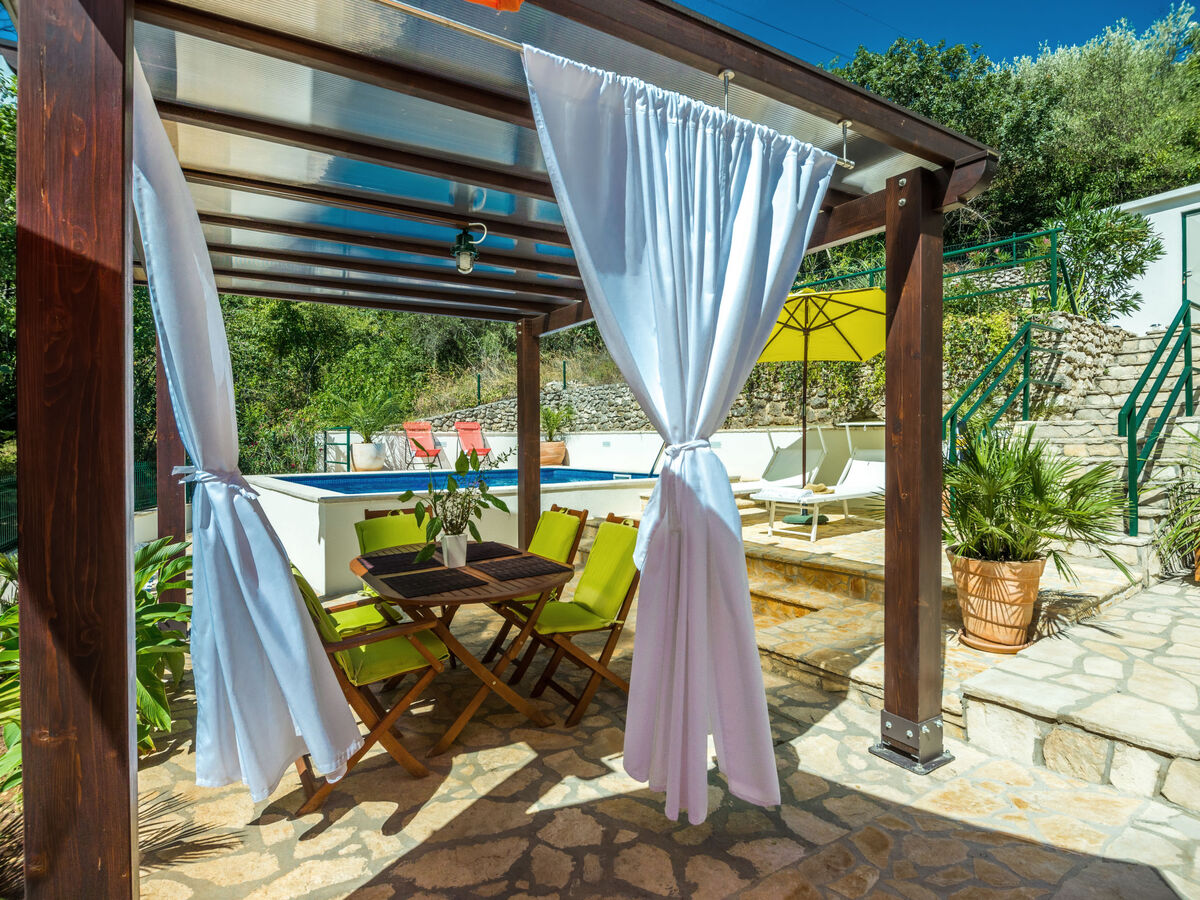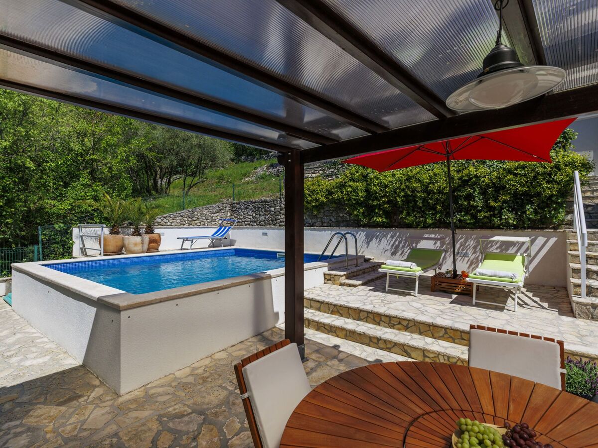 A usage privé: terrain 250 m2 (clôturé), jardin sur plusieurs niveaux plantes, piscine (5 x 4 m, profondeur 130 cm, disponibilité saisonnière: 01.Mai.