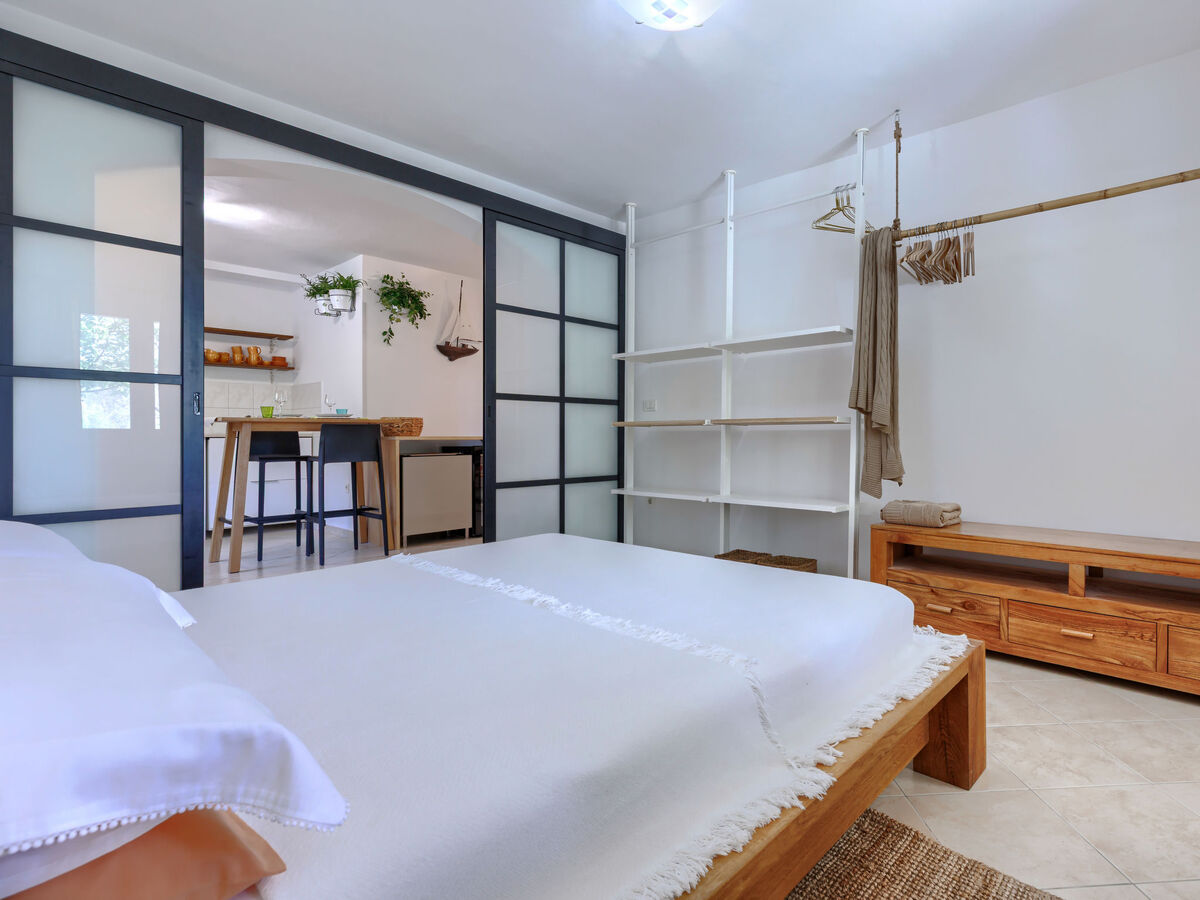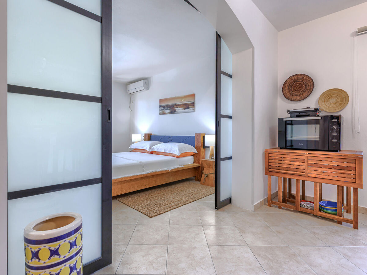 Aménagement agréable et plaisant: séjour/chambre à coucher avec 1 grand-lit (140 cm), table pour les repas, TV (satellite), chaînes de TV internationales et air-conditionné.
