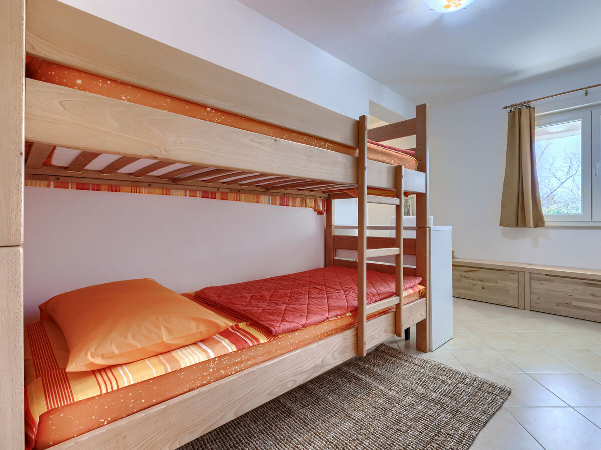 À l'étage inférieur: 1 chambre avec 1 x 2 lits superposés (90 cm, longueur 200 cm).