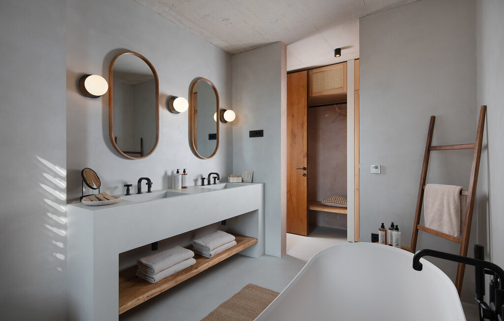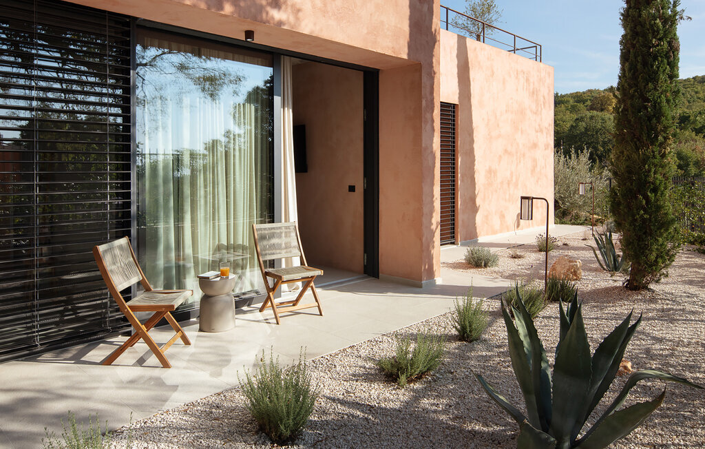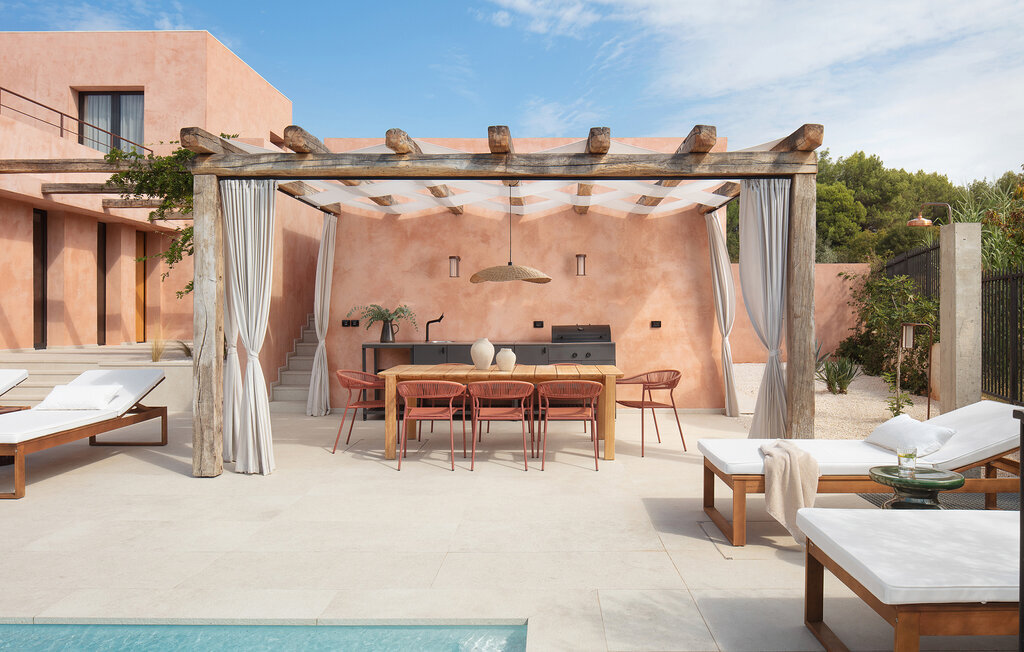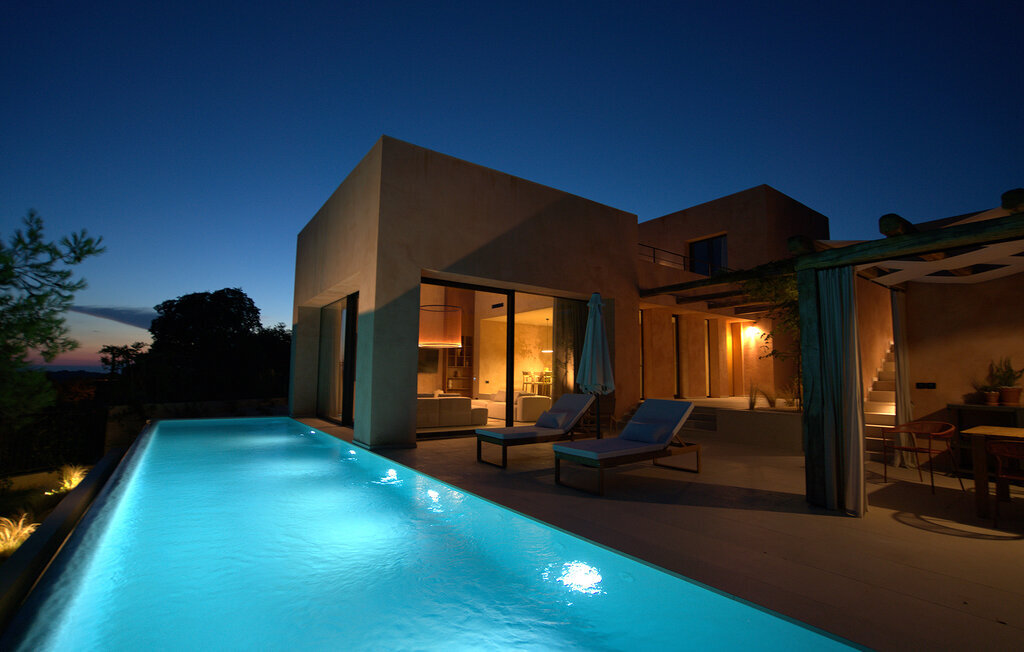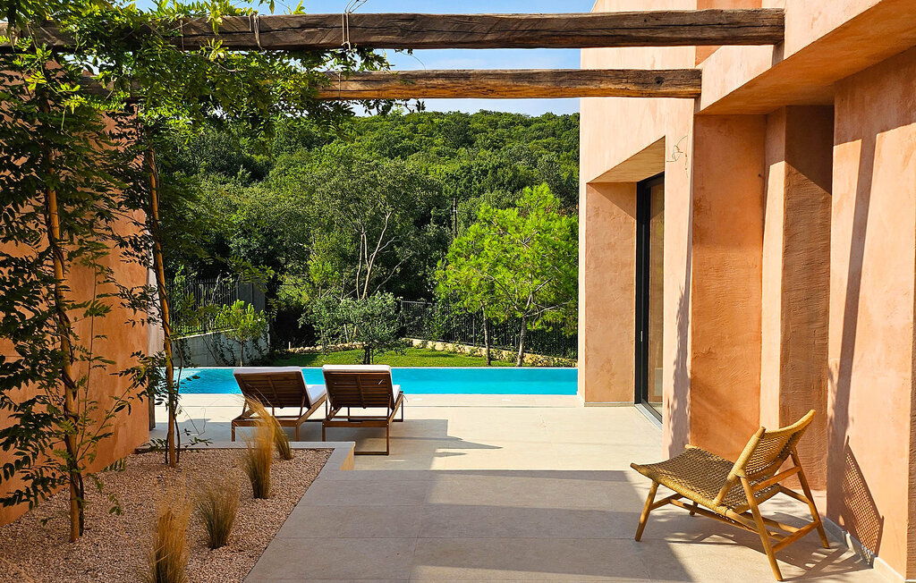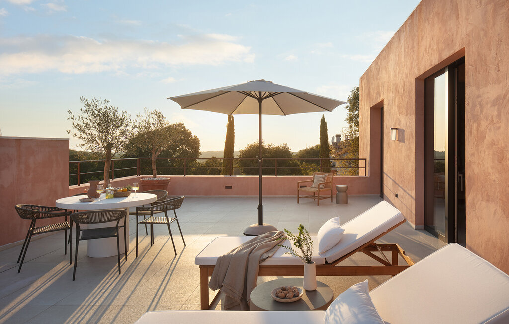 L'espace extérieur avec son jardin méditerranéen et sa grande terrasse ensoleillée offre une combinaison harmonieuse de luxe moderne et de nature. Rafraîchissez-vous dans la magnifique piscine à débordement, savourez un sundowner sur le toit-terrasse ou passez des soirées barbecue conviviales sous la pergola.