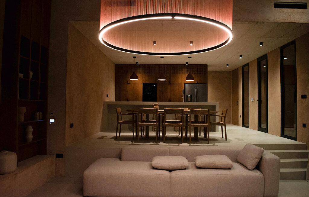 Ce domicile luxueux à l'architecture impressionnante allie un design puriste à des tons naturels chauds et des matériaux de qualité. Réjouissez-vous des soirées culinaires conviviales dans la cuisine ouverte et des repas pleins d'ambiance dans l'élégante salle à manger. Détendez-vous sur le canapé confortable et regardez un bon film en streaming.
