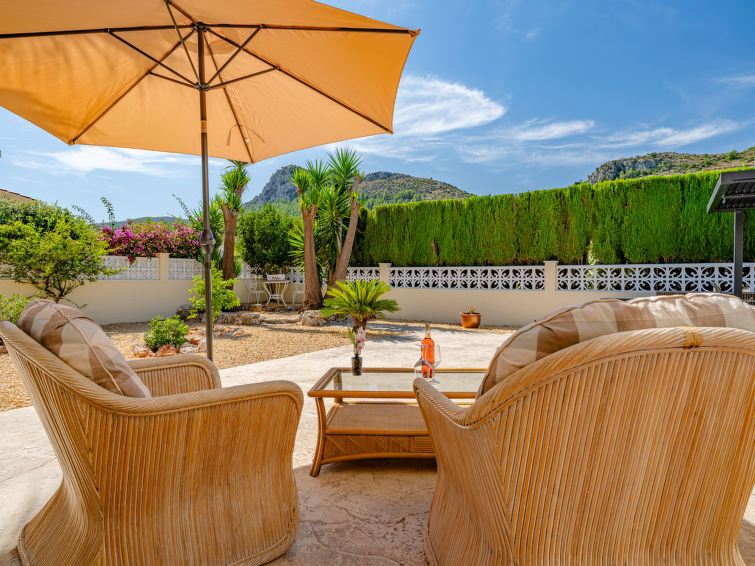 Douche extérieure, meubles de jardin, barbecue, place de parking (couvert) sur le terrain.