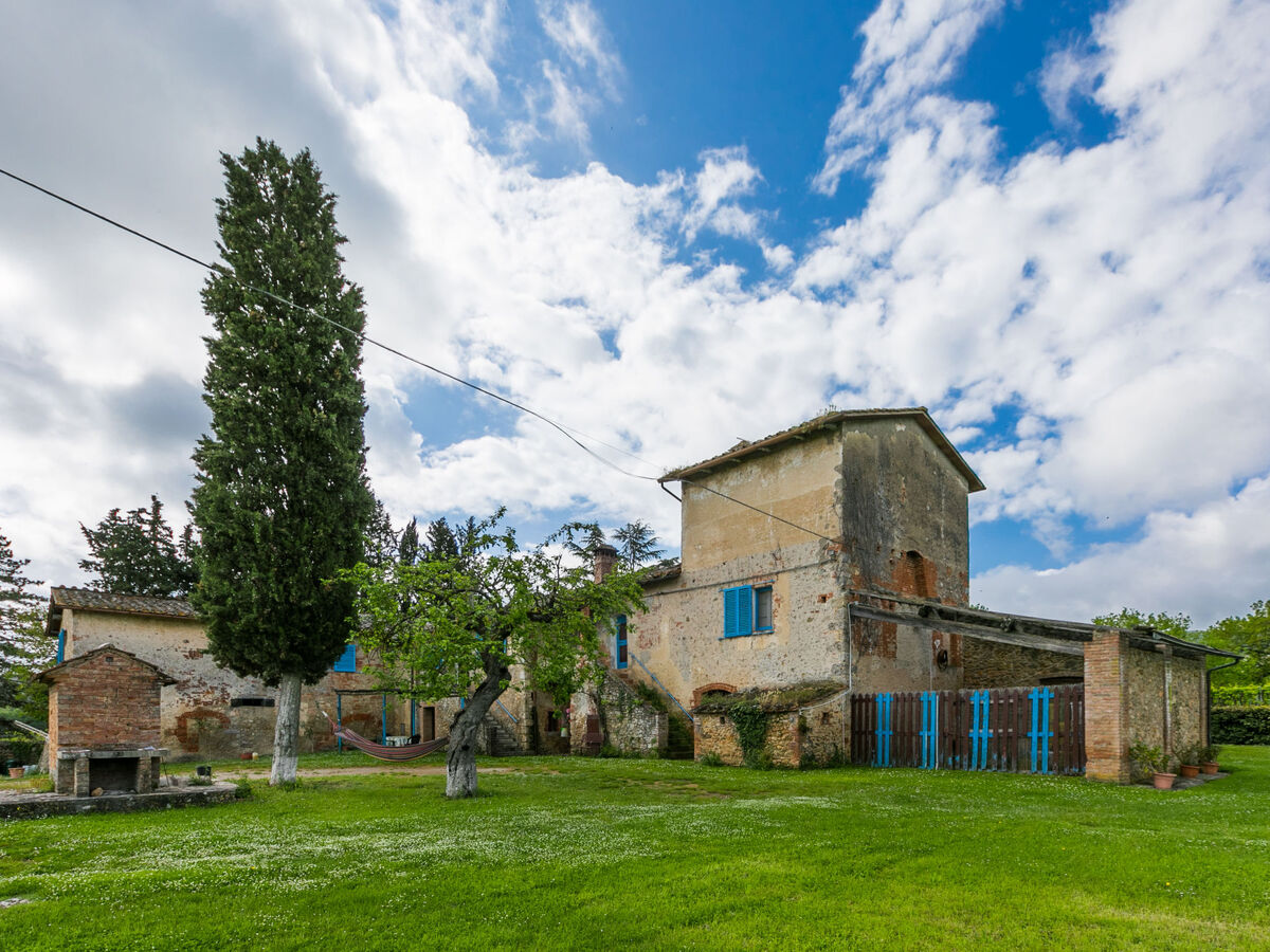 Monteriggioni: Ancienne ferme rustique, individuelle "Fattoria Petraglia", du 15ème siècle, environnée par les arbres, prés et vignobles.