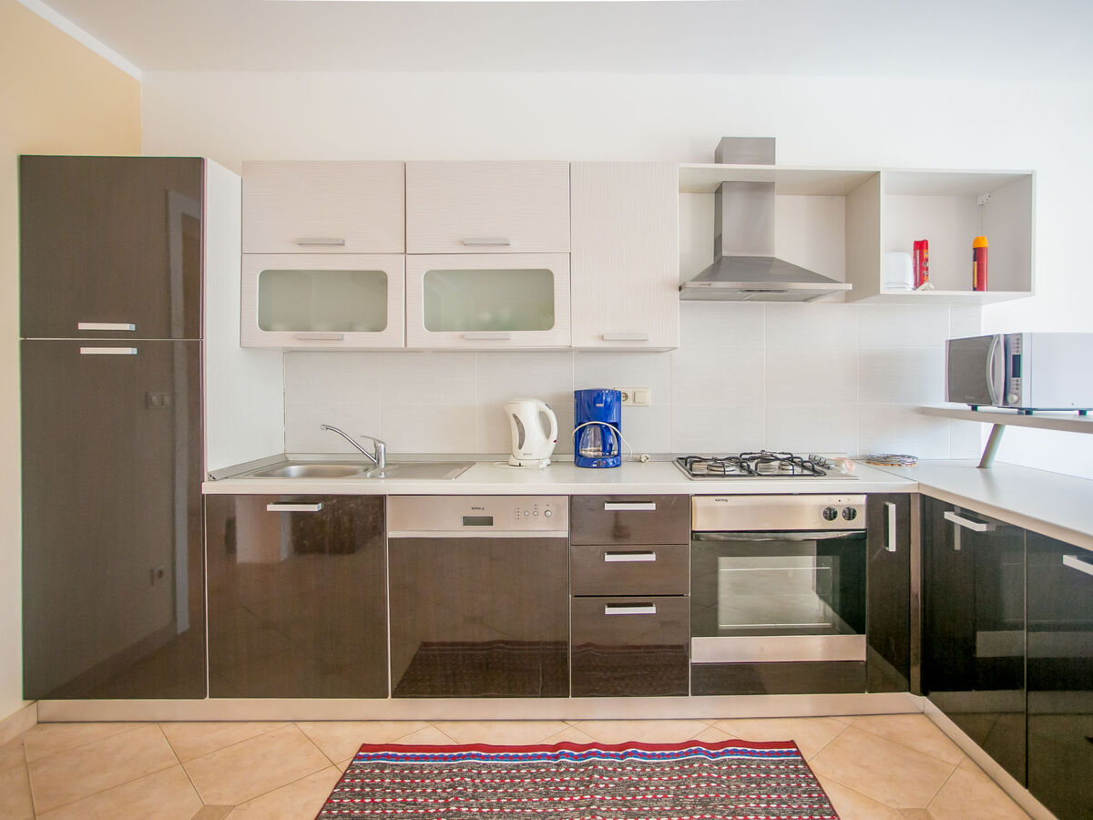 Cuisine ouverte (four, lave-vaisselle, 1 plaque vitrocéramiques, 3 feux, grille-pain, bouilloire électrique, micro-ondes, congélateur, cafetière électrique).