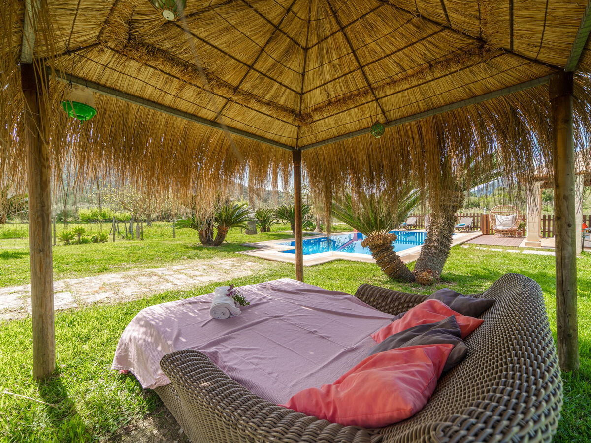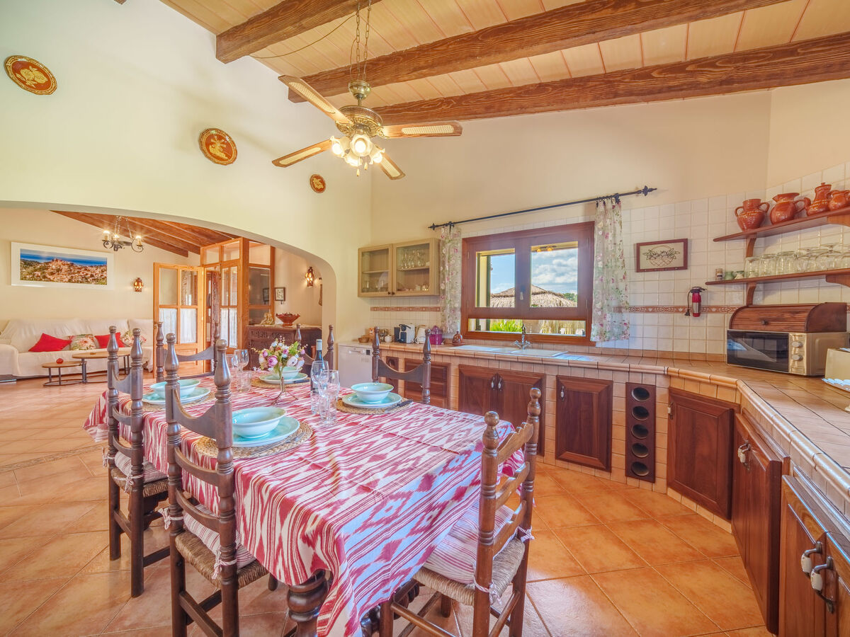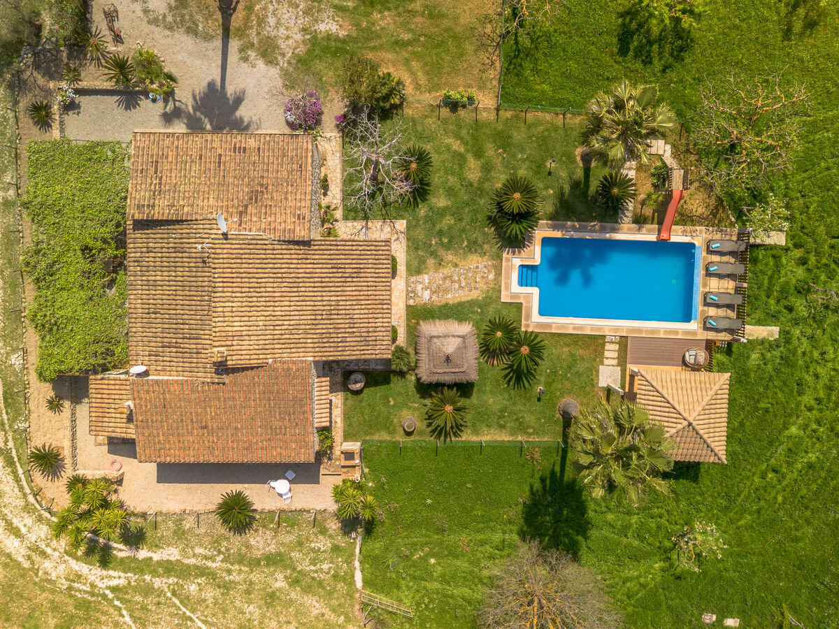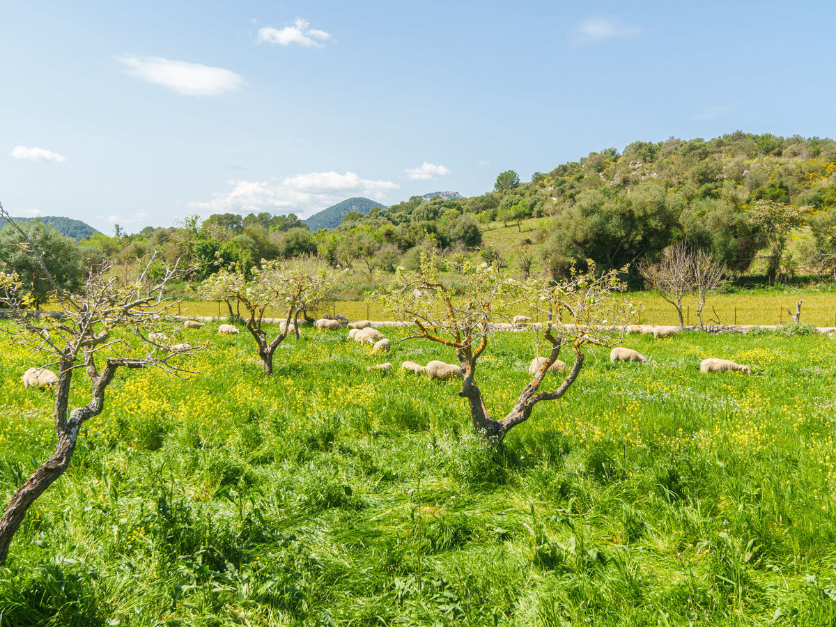 En-dehors de la localité, à 6.1 km du centre de Campanet, situation tranquille, ensoleillée, zone avec peu de trafic, à 18 km de la mer, dans la verdure.
