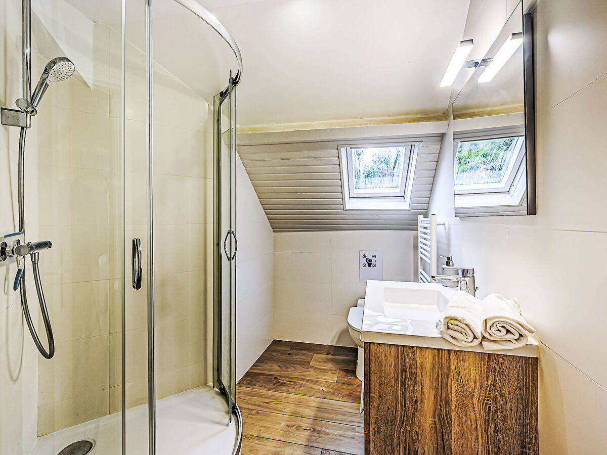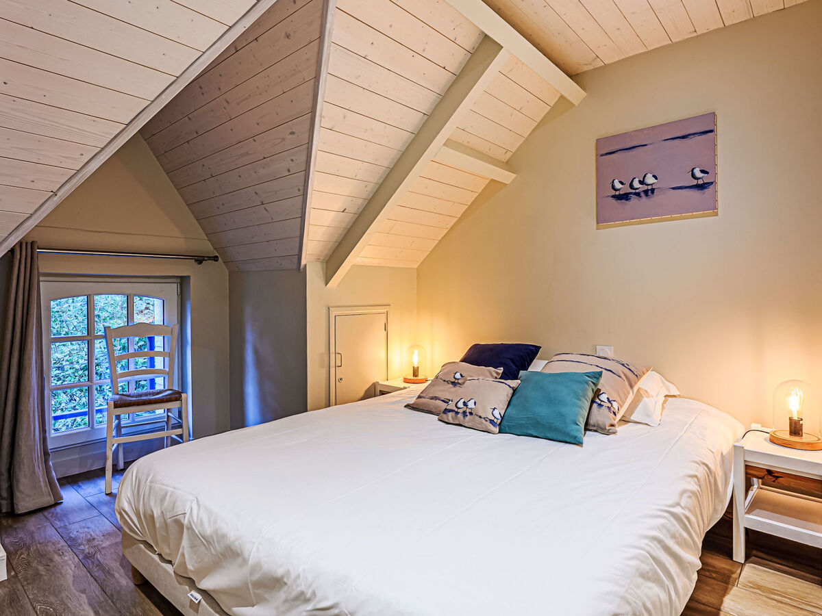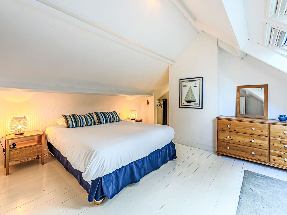 À l'étage supérieur: 1 chambre avec 1 grand-lit (1 x 160 cm, longueur 190 cm).