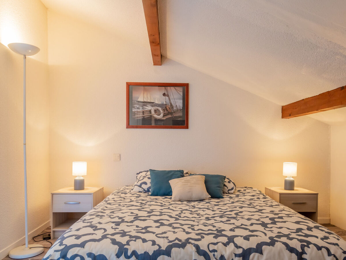 1 chambre avec 1 grand-lit (140 cm, longueur 190 cm).