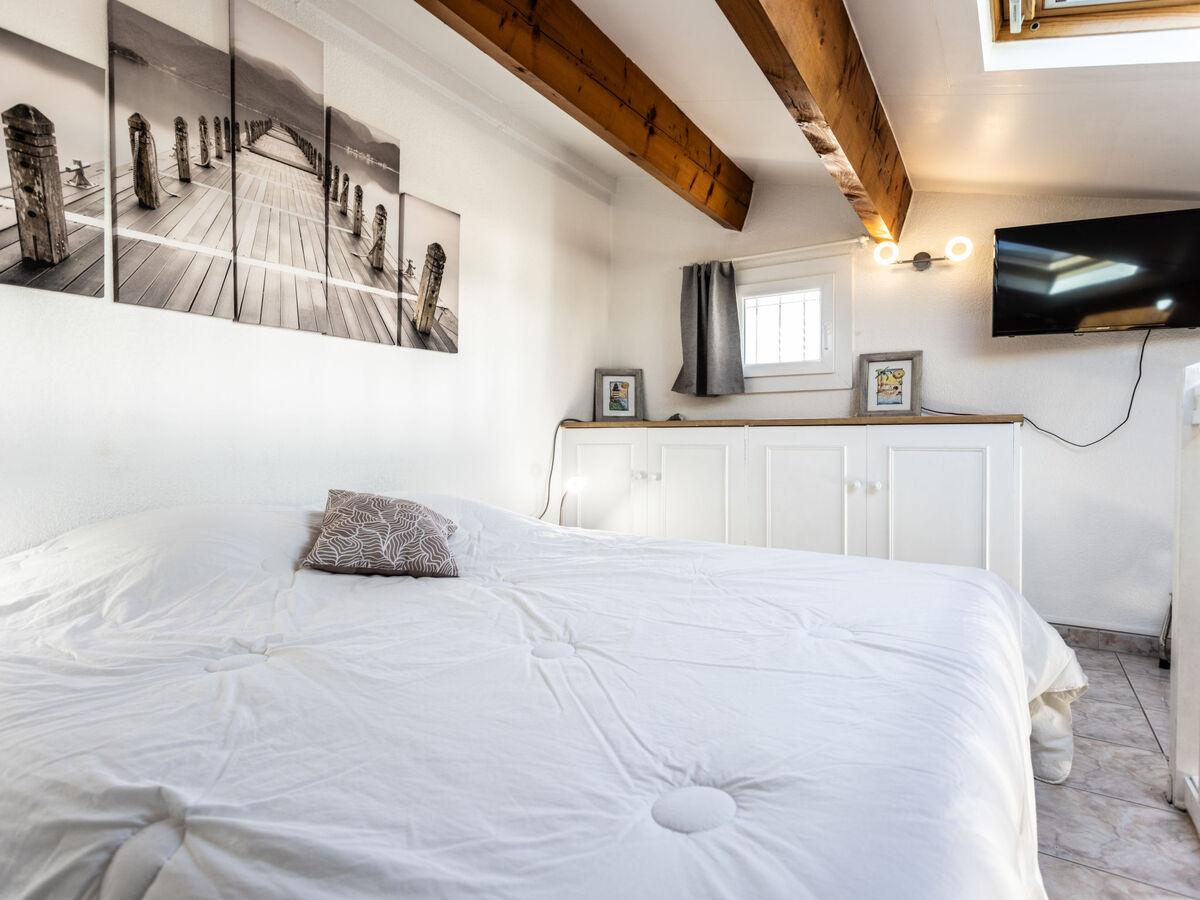 1 chambre avec 1 grand-lit (160 cm, longueur 200 cm).