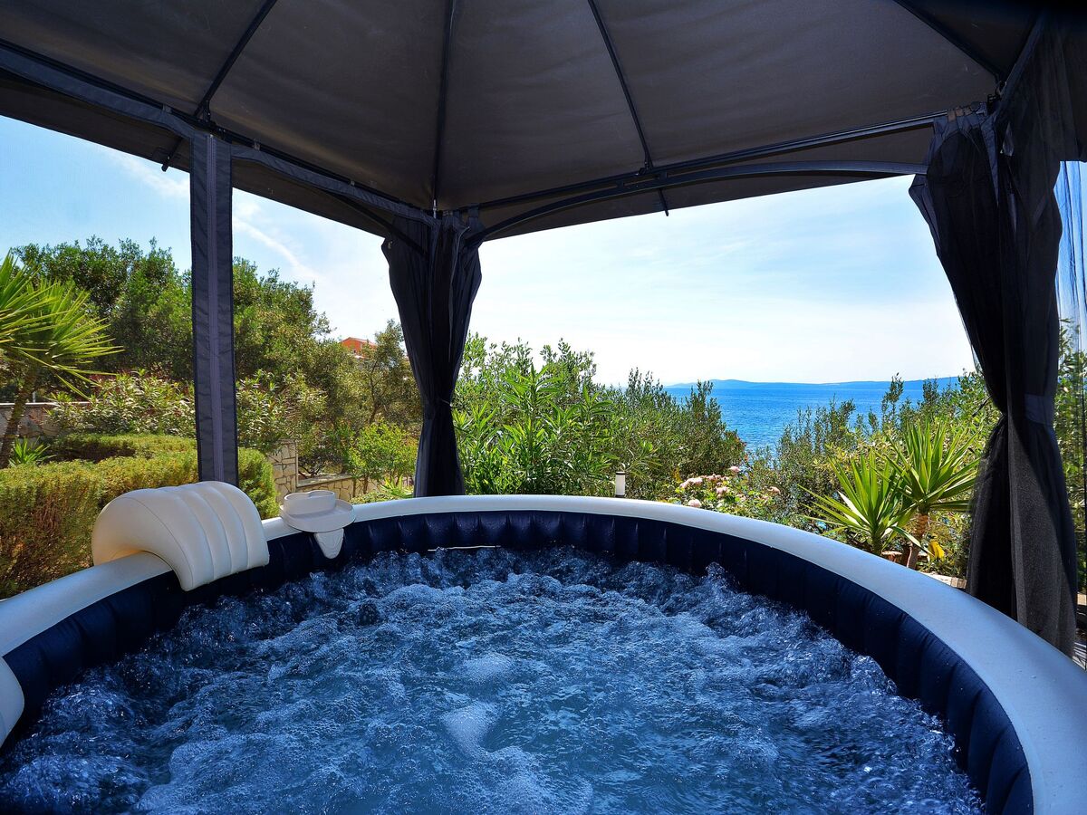 À 5 km du centre de Trogir, situation ensoleillée, surélevée sur un versant, à 30 m de la mer, à 30 m de la plage.
