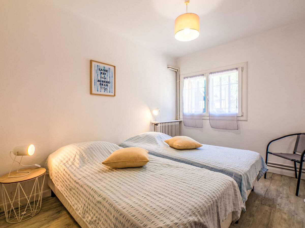 1 chambre avec 2 lits (90 cm, longueur 190 cm), ventilateur.